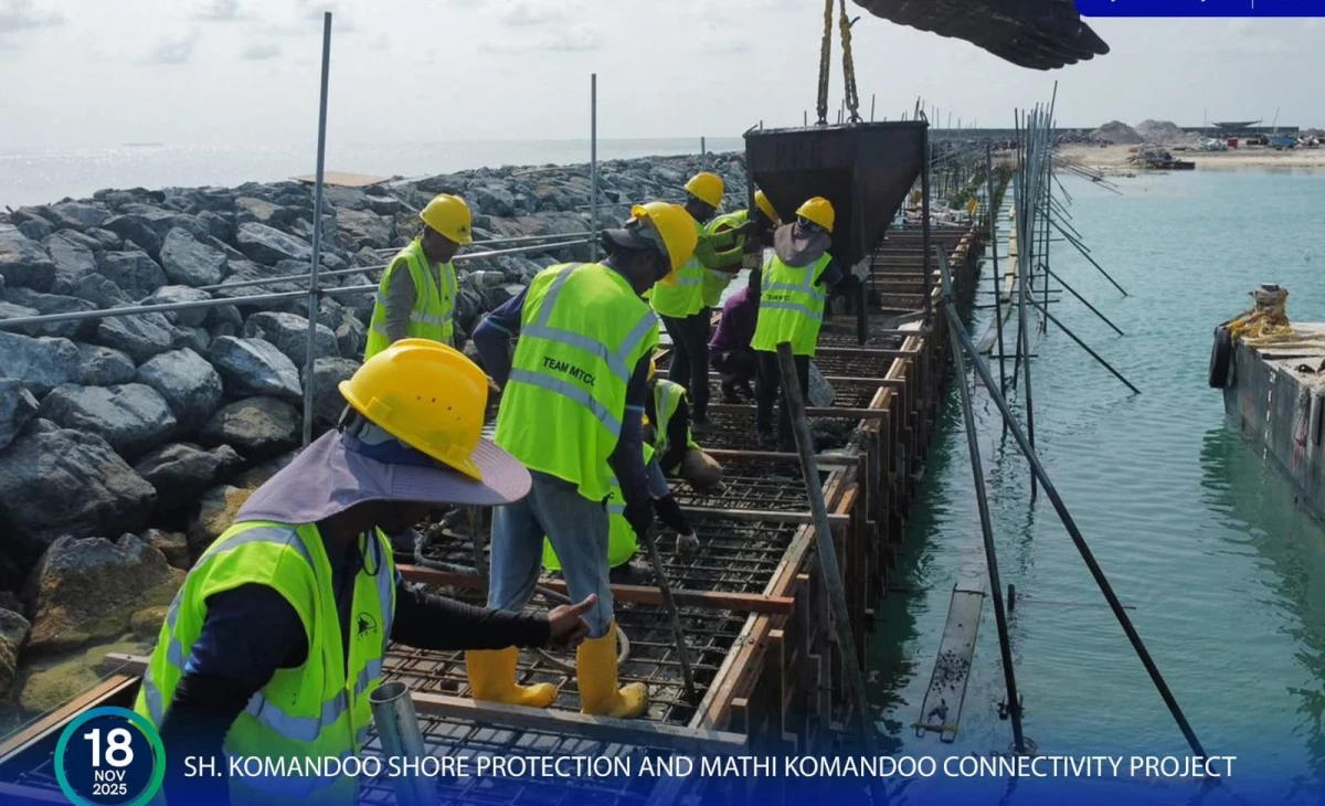 ށ. ކޮމަންޑޫގައި ކުރިއަށްދާ ގޮނޑުދޮށް ހިމާޔަތްކުރުމުގެ މަޝްރޫޢު އާއި ކޮމަންޑު އާއި މަތިކޮމަންޑޫ ގުޅާލުމުގެ މަޝްރޫޢުގެ މިހާރު ކުރިއަށްދަނީ ޖެޓީގެ ކޮންކްރީޓް ކާސްޓިންގެ މަސައްކަތް ކަމަށް މޯލްޑިވްސް ޓްރާންސްޕޯޓް އެންޑް ކޮންޓްރެކްޓިންގ ކޮމްޕެނީ (އެމްޓީސީސީ) އިން ބުނެފި އެވެ.