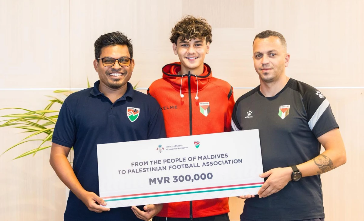 ރާއްޖޭގެ ޒުވާން ޓީމާ ދެކޮޅަށް ފަލަސްތީންގެ 17 އަހަރުން ދަށުގެ ގައުމީ ފުޓްބޯޅަ ޓީމުގެ މެދުގައި ކުޅުނު އެކުވެރިކަމުގެ ދެ މެޗުން ސްވެނިއަރ ޓިކެޓް ވިއްކައިގެން ލިބުނު 300،000 ރުފިޔާ (19،455.25 ޑޮލަރު) އެފްއޭއެމްގެ ފަރާތުން ފަލަސްތީން ޓީމަށް ހަދިޔާކޮށްފި އެވެ.