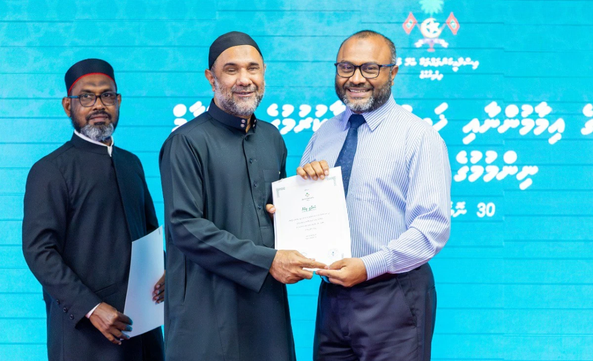 އިމާމުން ތާޒާ ކުރުމުގެ ވޯކްޝޮޕް ނިންމައި ސެޓްފިކެޓް ހަވާލުކުރުމުގެ ރަސްމިއްޔާތުގެ ތެެރެއިން--ފޮޓޯ:އިސްލާމިކް މިނިސްޓްރީ
