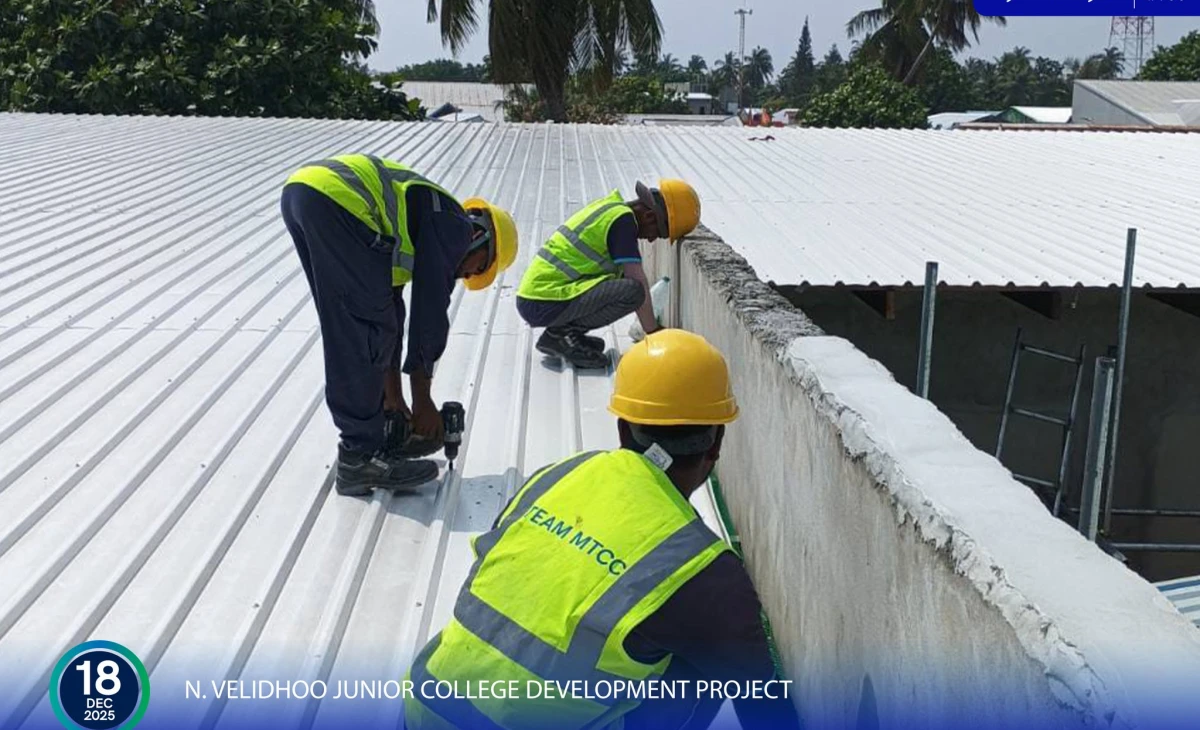 ވެލިދޫގައި ތަރައްގީކުރަމުންދާ ޖޫނިއަރ ކޮލެޖުގެ މަސައްކަތް ކުރިއަށްދަނީ. ފޮޓޯ: އެމްޓީސީސީ