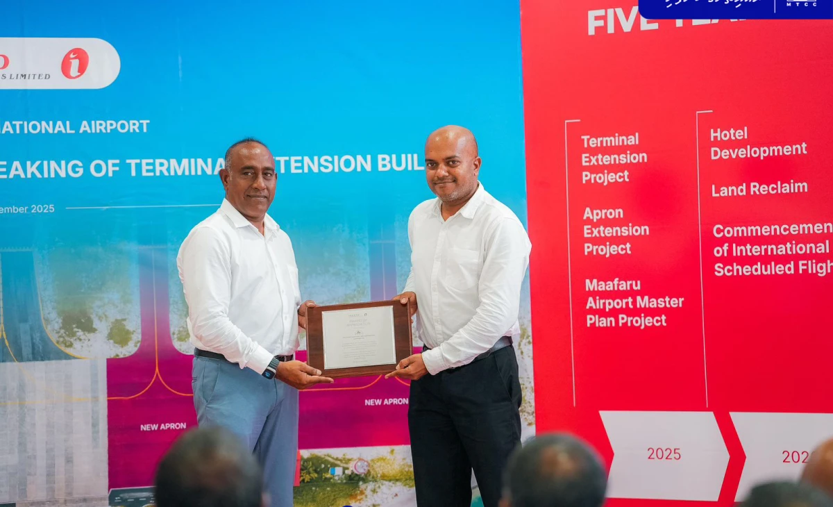 މާފަރު އިންޓަރނޭޝަނަލް އެއަރޕޯޓުގެ އާ އޭޕްރަން ބޮޑުކުރުމުގެ މަޝްރޫޢު ކާމިޔާބުކަމާއެކު ނިންމާލުމުން މޯލްޑިވްސް ޓްރާންސްޕޯޓް އެންޑް ކޮންޓްރެކްޓިންގ ކޮމްޕެނީ (އެމްޓީސީސީ) ގެ މަސައްކަތްތައް ފާހަގަކޮށް، އަގުވަޒަންކުރުމުގެ ގޮތުން އައިލެންޑް އޭވިއޭޝަން ސާވިސަސް ލިމިޓެޑް (އައިއޭއެސްއެލް) އިން އެ ކުންފުންޏަށް ހަނދާނީ ޕްލާކެއް ދީފިއެވެ.