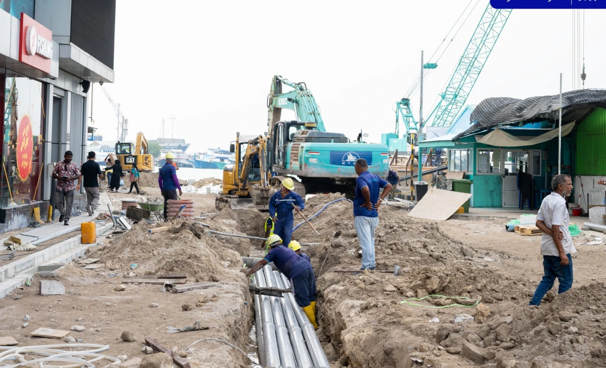 މާލޭގެ ބާޒާރުމަތީ މަގު ތަރައްޤީކުރުމުގެ މަސައްކަތުގެ ތެރެއިން. ފޮޓޯ: އެމްޓީސީސީ
