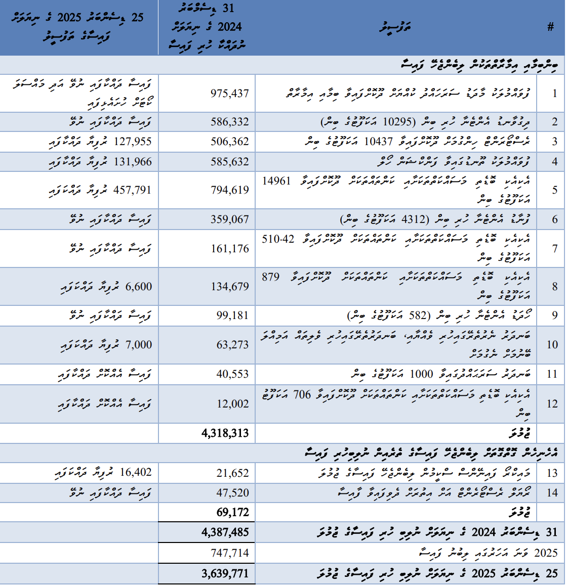 އެ ފައިސާގެ ތެރެއިން ނިމުނު 2025 ވަނަ އަހަރު ކައުންސިލަށް ލިބުނީ އެންމެ 747،714 ރުފޔާއެވެ. އެހެންކަމުން ޖުމްލަ 3،639،771 (ތިން މިލިއަން ހަލައްކަ ތިރީސްނުވަހާސް ހަތްސަތޭކަ ހަތްދިހަ އެއް) ރުފިޔާ ކައުންސިލަށް ޑިސެންބަރު 25، 2025 ވަނަ ދުވަހުގެ ނިޔަލަށް ލިބިފައިނުވާކަމަަށް އޮޑިޓާ ޖެނެރަލްގެ އޮފީހުން ބުނެފައިވެއެވެ.