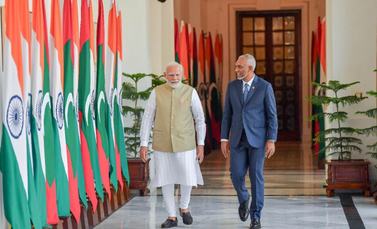 ދިވެހިރާއްޖޭގެ ރައީސުލްޖުމްހޫރިއްޔާ ޑރ.މުހައްމަދު މުއިއްޒާއި އިންޑިޔާގެ ބޮޑުވަޒީރު ނަރެންދުރަ މޯދީ