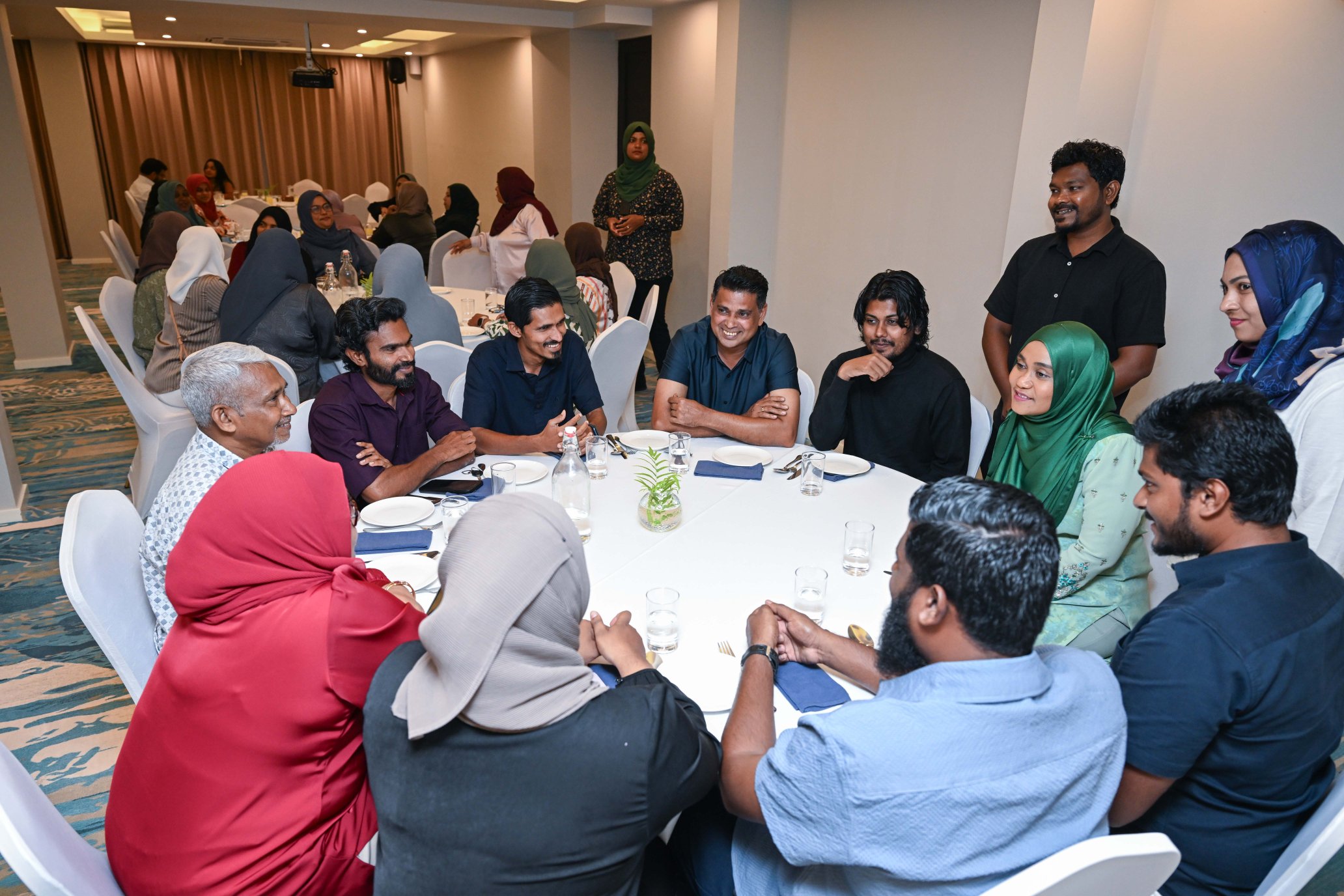 ފަސްޓް ލޭޑީ ފުވައްމުލަކު ކެންޑިޑޭޓުން އަދި ޕާޓީގެ މެންބަރުންނާ ބައްދަލުކުރައްވަނީ. ފޮޓޯ: ޕީއެންސީ