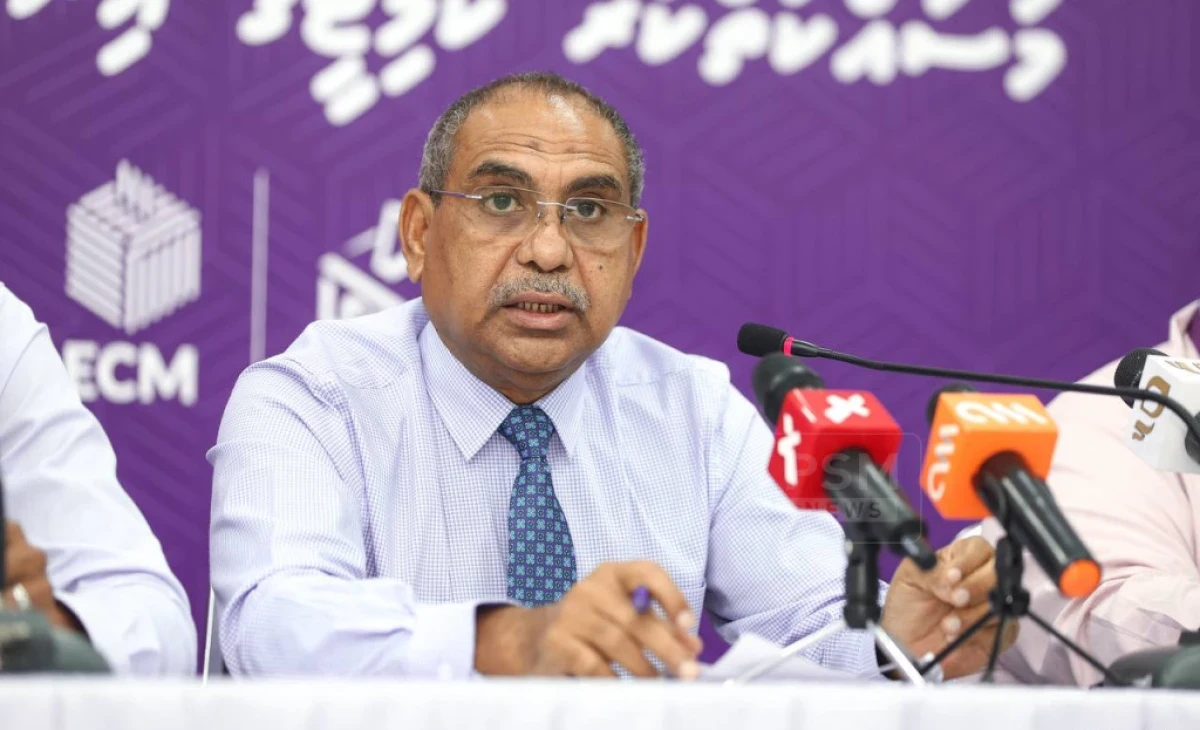 އިލެކްޝަންސް ކޮމިޝަނުގެ ރައީސް މުހައްމަދު ޒާހިދު ނޫސްވެރިންގެ ބައްދަލުވުމެއްގައި ވާހަކަދައްކަވަނީ. ފޮޓޯ: އީސީ