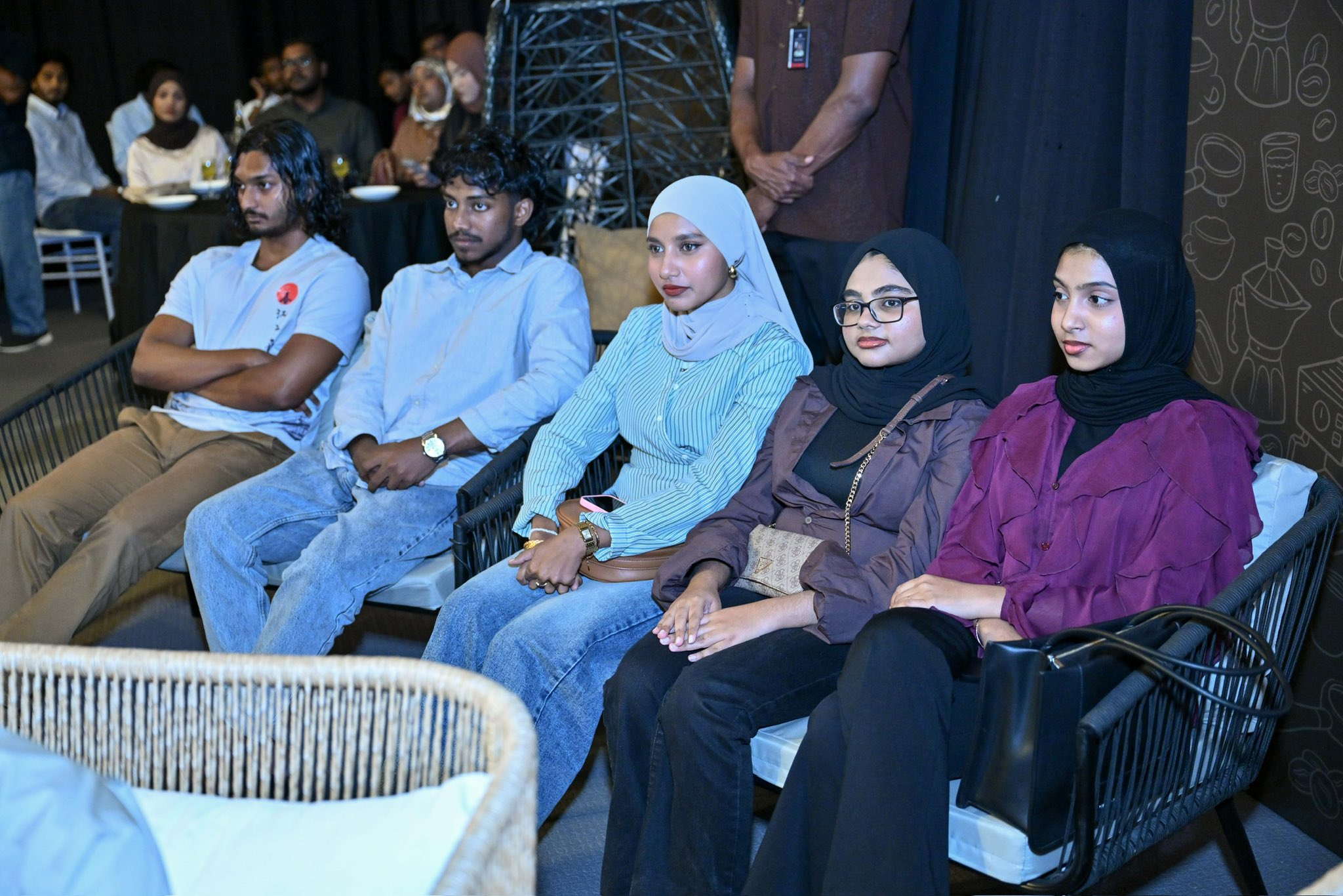 "އެސްޕްރެސޯ ވިތު ރައީސް" ހަރަކާތުގައި ބައިވެރިވި ޒުވާނުން. ރައީސުލްޖުމްހޫރިއްޔާ ވަނީ ޒުވާނުންނަށް އުއްމީދީ މެސެޖުތަކެއް ދެއްވާފައި. ފޮޓޯ: ރައީސް އޮފީސް