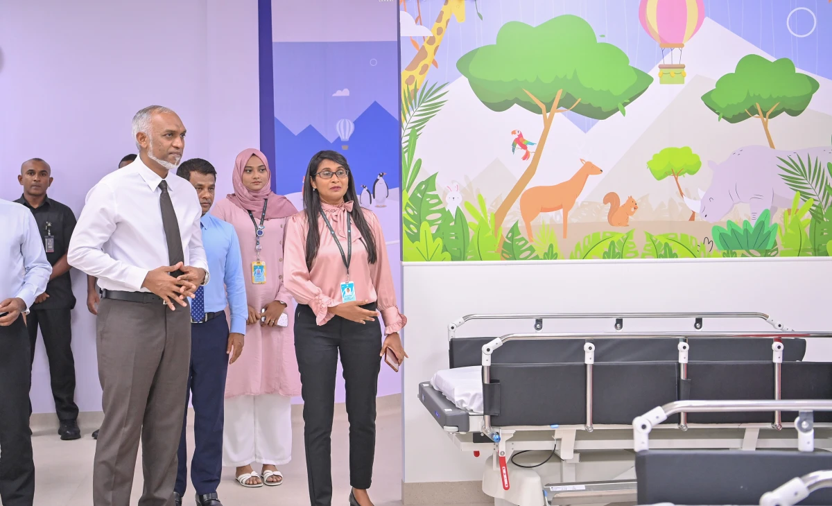 ރައީސުލްޖުމްހޫރިއްޔާ ޑރ.މުޙައްމަދު މުޢިއްޒު ދަރުމަވަންތަ ހޮސްޕިޓަލުގެ ކުޑަކުދިންގެ ވޯޑު ބައްލަވައިލައްވަނީ، ފޮޓޯ: ރައީސް އޮފީސް