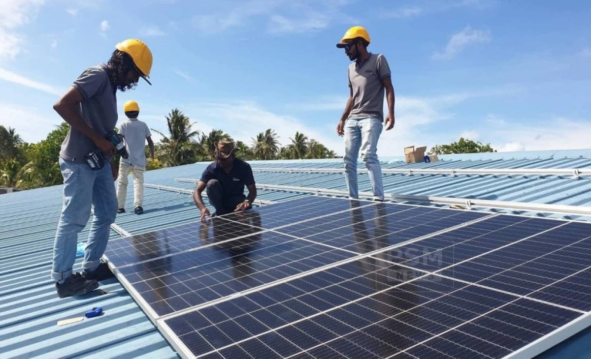 މަގޭ ސޯލާ މަޝްރޫއުގެ ދަށުން ގެއެއްގެ ފުރާޅުގައި ސޯލާ ޕެނަލް ހަރުކުރަނީ