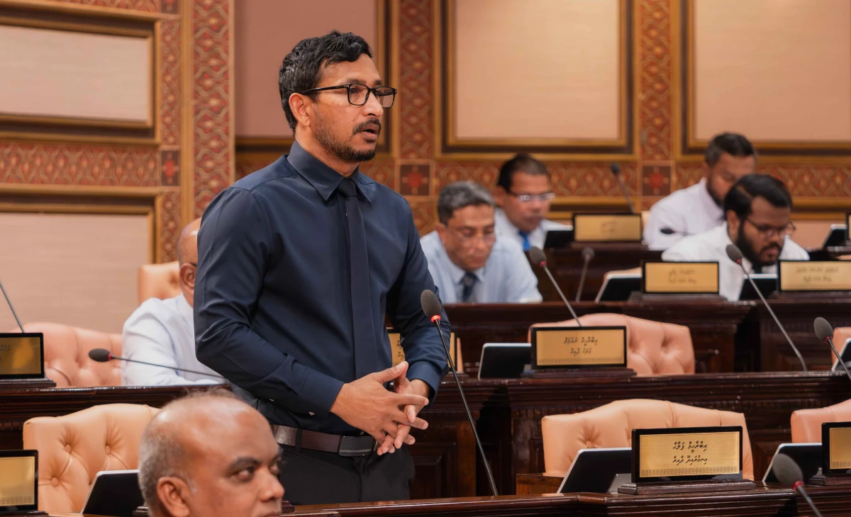 ލާމަރުކަޒީ ޤާނޫނަށް ސަރުކާރުގެ ފަރާތުން އިޞްލާޙް ހުށަހެޅުއްވި އިނގުރައިދޫ ދާއިރާގެ މެންބަރު ފަލާޙް. --ފޮޓޯ: މަޖިލިސް