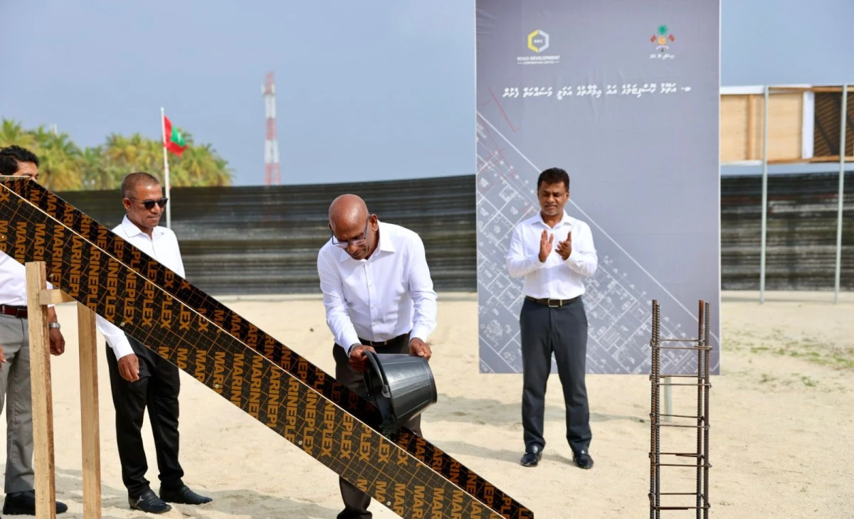 އޭދަފުށީގައި އިމާރާތްކުރާ 50 އެނދުގެ ހޮސްޕިޓަލުގެ ބިންގާ އެޅުން. ފޮޓޯ: ޞިއްޙީ ވުޒާރާ