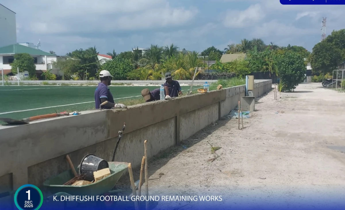ދިއްފުށީ ފުޓްބޯޅަ ދަނޑުގެ ވަށާ ފާރު ރޭނުމުގެ މަސައްކަތް ނިމުމާގާތަށް
