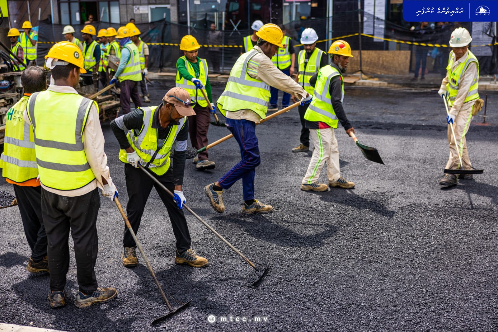 ތިން ސެގްމަންޓަކަށް ބަހާލައިގެން ކުރިއަށްގެންދާ މި މަސައްކަތުގެ ފުރަތަމަ ސެގްމެންޓުގެ 97 ޕަސެންޓް މިހާރު ވަނީ ނިމިފަ އެވެ. މަގުގައި ދެން ކުރަން އޮތީ މަގުގެ މާކިންތައް ކުރެހުމާއި ސައިން ބޯޑުތައް ހަރުކުރުމެވެ.