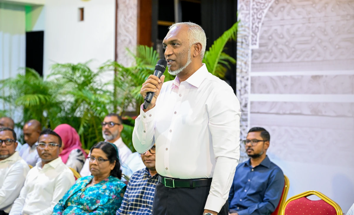 މާފަންނު ރައްޔިތުންނާ ބައްދަލުކުރައްވައި ރައީސް ޑރ.މުޙައްމަދު މުޢިއްޒު ވާހަކަދައްކަވަނީ، ފޮޓޯ: ރައީސް އޮފީސް