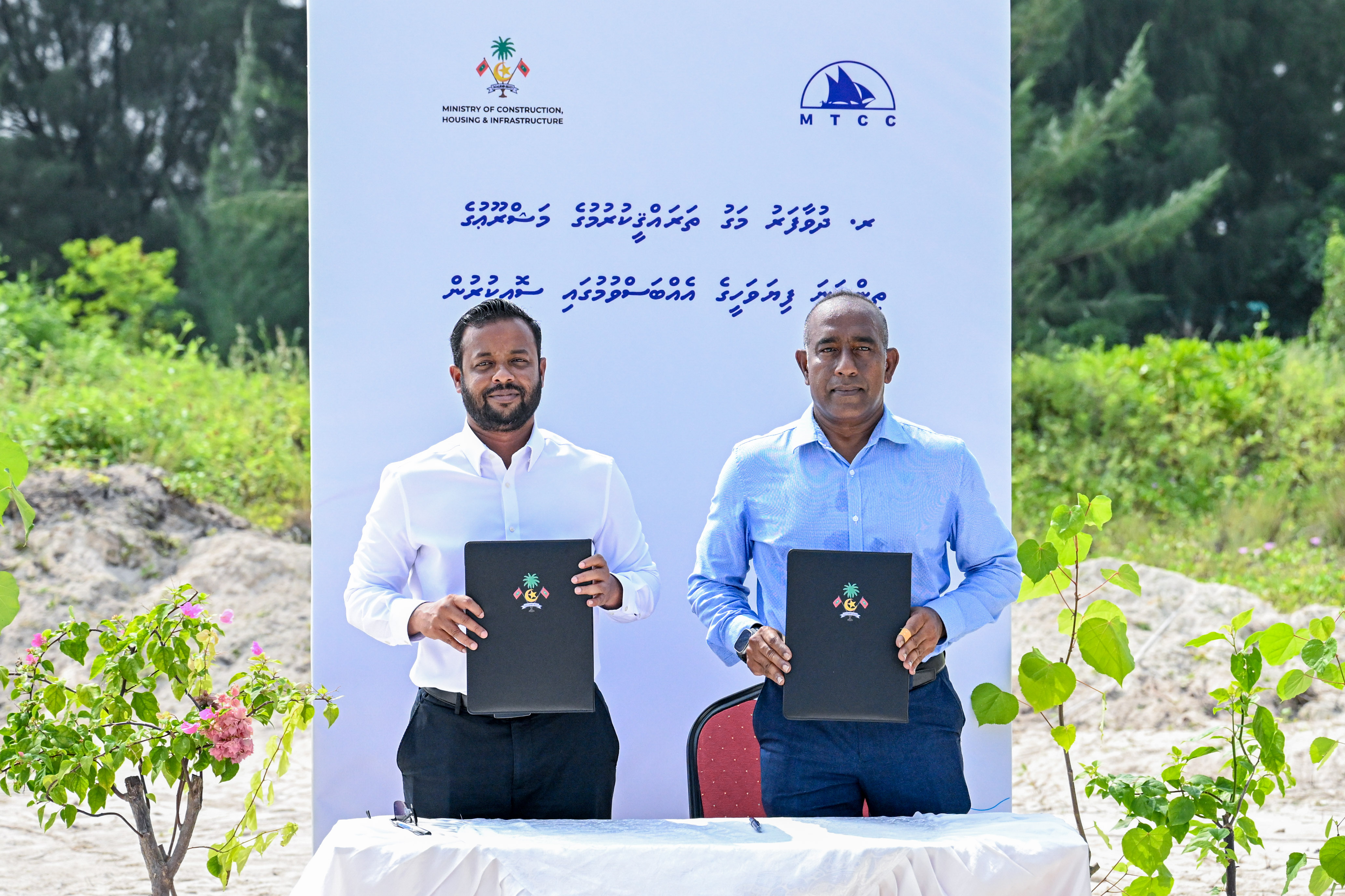 ދުވާފަރުގެ މަގުތައް ޒަމާނީ ފެންވަރަށް ހެދުމުގެ ތިންވަނަ ފިޔަވަހީގެ މަސައްކަތް އެމްޓީސީސީއާ ޙަވާލުކުރުން. ފޮޓޯ: ރައީސް އޮފީސް