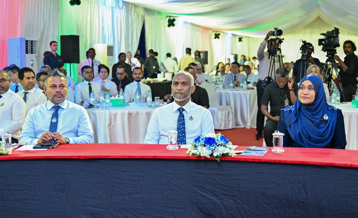 މަސްވެރިންގެ ދުވަހުގެ ޤައުމީ ޖަލްސާގައި ރައީސުލްޖުމްހޫރިއްޔާގެ ދެކަނބަލުން ބައިވެރިވަޑައިގަންނަވަނީ. ފޮޓޯ: ރައީސް އޮފީސް