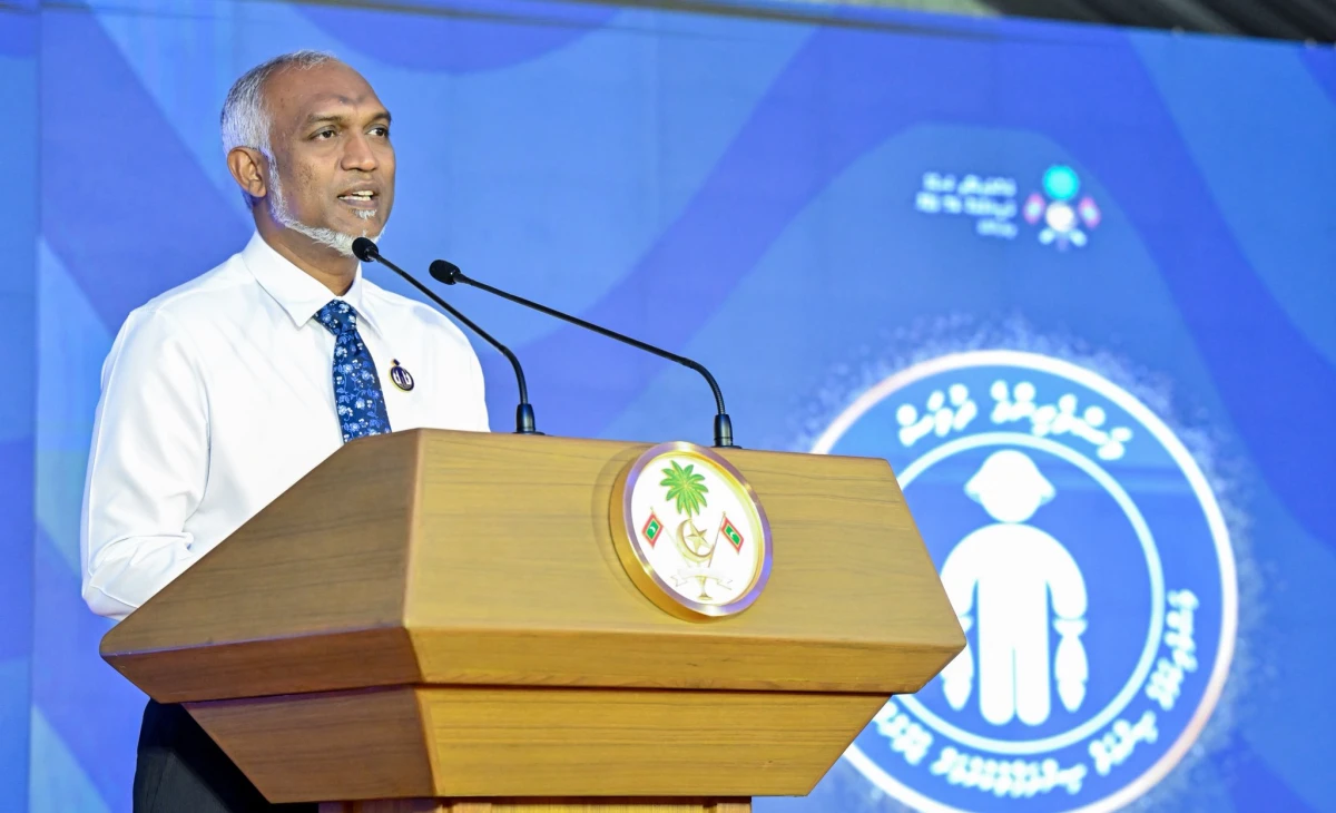 މަސްވެރިންގެ ދުވަހުގެ ޤައުމީ ޖަލްސާގައި ރައީސުލްޖުމްހޫރިއްޔާ ޑރ. މުޙައްމަދު މުޢިއްޒު ވާހަކަދައްކަވަނީ. ފޮޓޯ: ރައީސް އޮފީސް