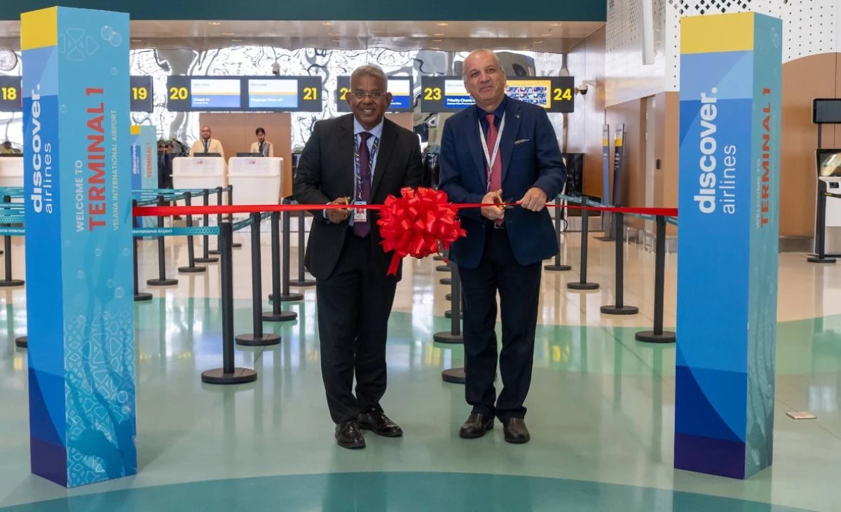 ޑިސްކަވަރ އެއާލައިންސް ގެ ޚިދުމަތް ދެމުންދާނީ ވީއައިއޭގެ އައު ޓަރމިނަލުންނެވެ.