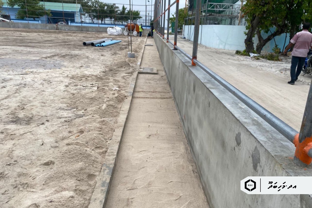 އދ. މަހިބަދޫގައި ހަދަމުންދާ ފުޓްސަލް ދަނޑުގެ މަސައްކަތްތަކުގެ ތެރެއިން ބިންގަނޑު ކޮމްޕެކްޓް ކުރުމާއި ފެންސު ޖެހުމުގެ އިތުރުން ސައިޑް ވޯކް ކޮންކްރީޓްގެ މަސައްކަތް މިހާރު ކުރަމުން އަންނަ ކަމަށް ރޯޑް ޑިވެލޮޕްމެންޓް ކޯޕަރޭޝަން (އާރްޑީސީ) އިން ބުނެފި އެވެ.