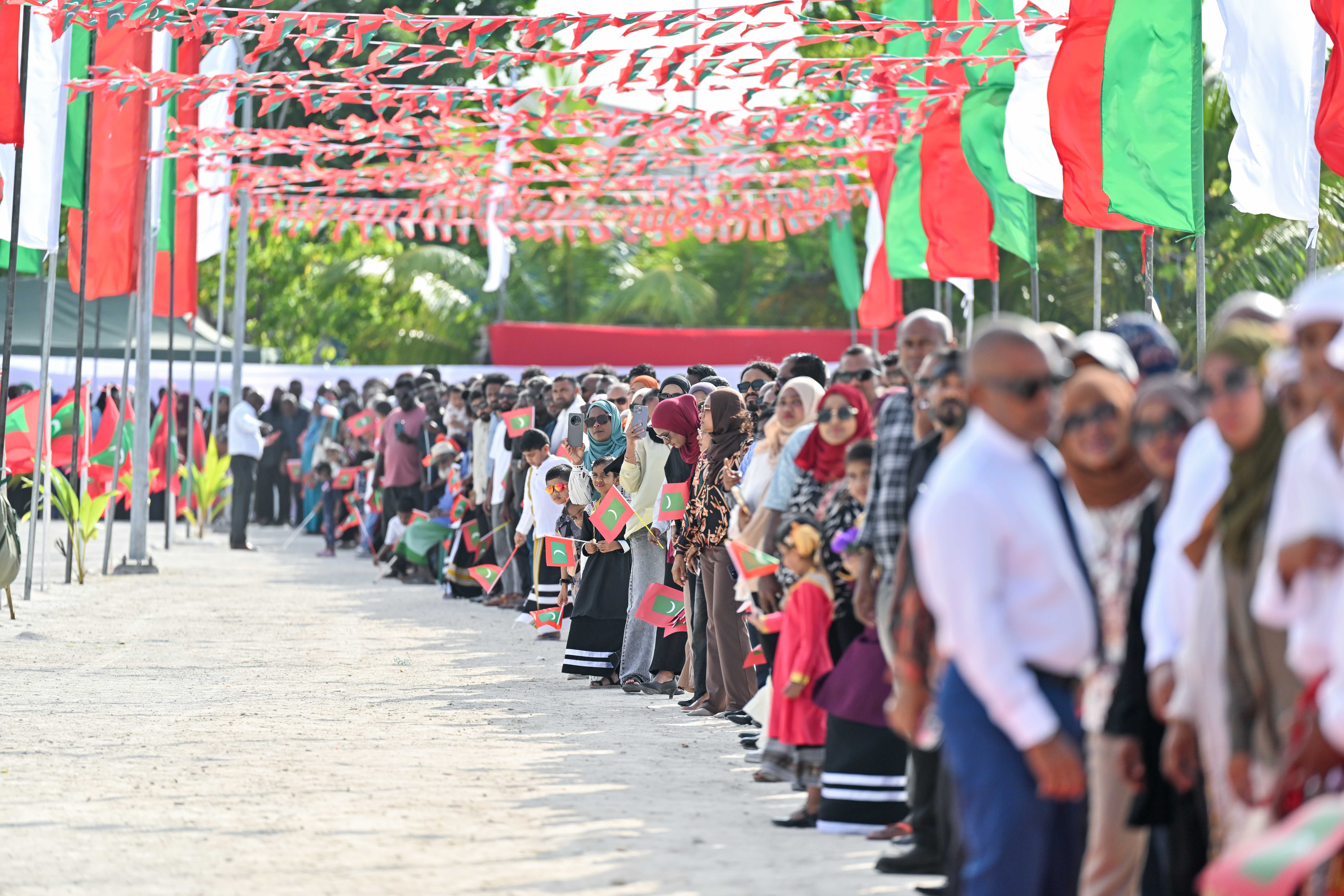 ރައީސުލްޖުމްހޫރިއްޔާ ކާށިދޫއަށް ކުރެއްވި ދަތުރުފުޅުގެ ތެރެއިން. ދެއަހަރުތެރޭ ރަސްމީ ޙައިސިއްޔަތުން މީހުން ދިރިއުޅޭ ހުރިހާ ރަށަކަށް ވަޑައިގެންނެވި. ފޮޓޯ: ރައީސް އޮފީސް