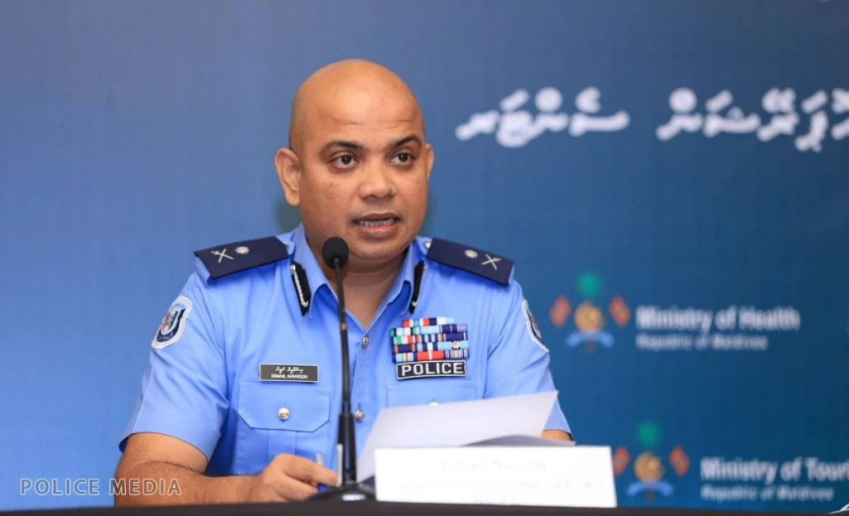 ކޮމިޝަނަރ އޮފް ޕޮލިސް ނަވީން ނޫސްވެރިންނަށް މަޢުލޫމާތު ދެއްވަނީ. ފޮޓޯ: ޕޮލިސް މީޑިއާ