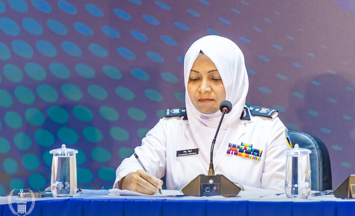 ކަސްޓަމްސްގެ ކޮމިޝަނަރ ޖެނެރަލް ފާޠިމަތު ދިޔާނާ ނޫސްވެރިންގެ ބައްދަލުވުމުގައި. ފޮޓޯ: ކަސްޓަމްސް