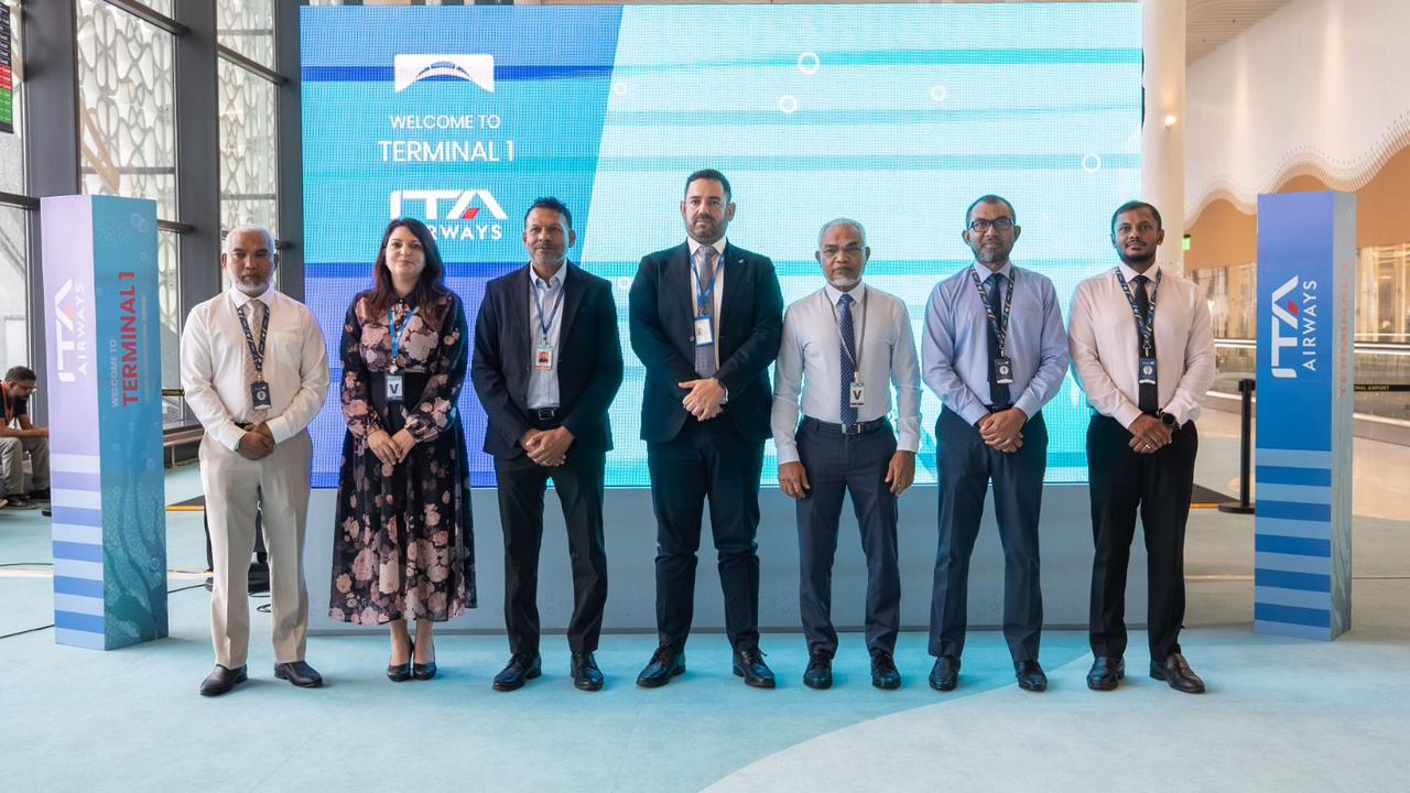 ޓާމިނަލް 1 އިން އައިޓީއޭ އެއާވޭސްއަށް ހިދުމަތް ދޭން ފެށުން ފާހަގަކުރުމަށް ވަނީ ޚާއްސަ ރަސްމިއްޔާތެއް ބާއްވައިފަ އެވެ. މި ރަސްމިއްޔާތު ޝަރަފުވެރިކޮށްދެއްވީ، މިނިސްޓަރ އެޓް ދަ ޕްރެޒިޑެންޝަލް ޕެލަސް އިގްބާލް އާދަމް އެވެ.
