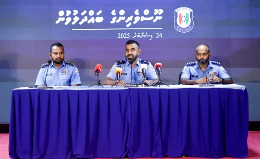 ނޫސްވެރިންގެ ބައްދަލުވުމުގައި ސުޕްރިންޓެންޑެންޓް އޮފް ޕޮލިސް ފަސީޙް ވާހަކަދައްކަވަނީ. ފޮޓޯ: ޕޮލިސް