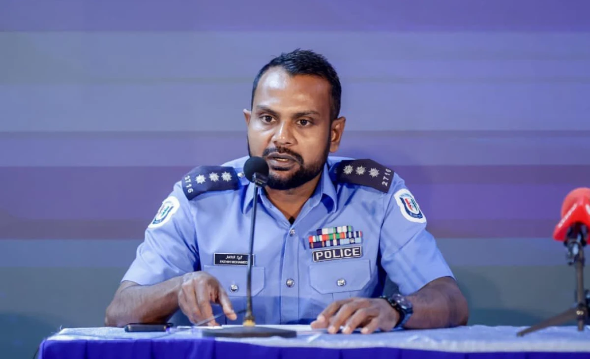 ޗީފް އިންސްޕެކްޓަރ އޮފް ޕޮލިސް ފާތިހު މުޙައްމަދު ނޫސްވެރިންގެ ބައްދަލުވުމުގައި މަޢުލޫމާތުދެއްވަނީ. ފޮޓޯ: ފުލުހުން