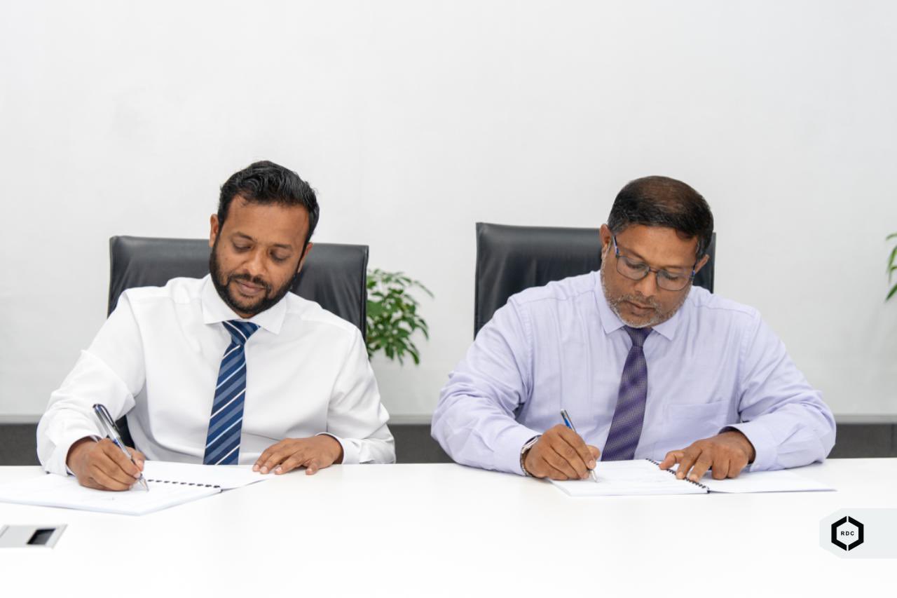 ގދ. ފިޔޯރީ މަގުތައް ޒަމާނީ ފެންވަރަށް ތަރައްޤީކުރުމުގެ މަސައްކަތް ހަވާލުކުރުމުގެ އެއްބަސްވުމުގައި ވަޒީރު ޑރ. ޢަބްދުﷲ މުއްޠަލިބު އަދި އާރްޑީސީގެ އެމްޑީ އިބްރާހިމް ނަޡީމު ސޮއިކުރައްވަނީ - ފޮޓޯ: އާރްޑީސީ