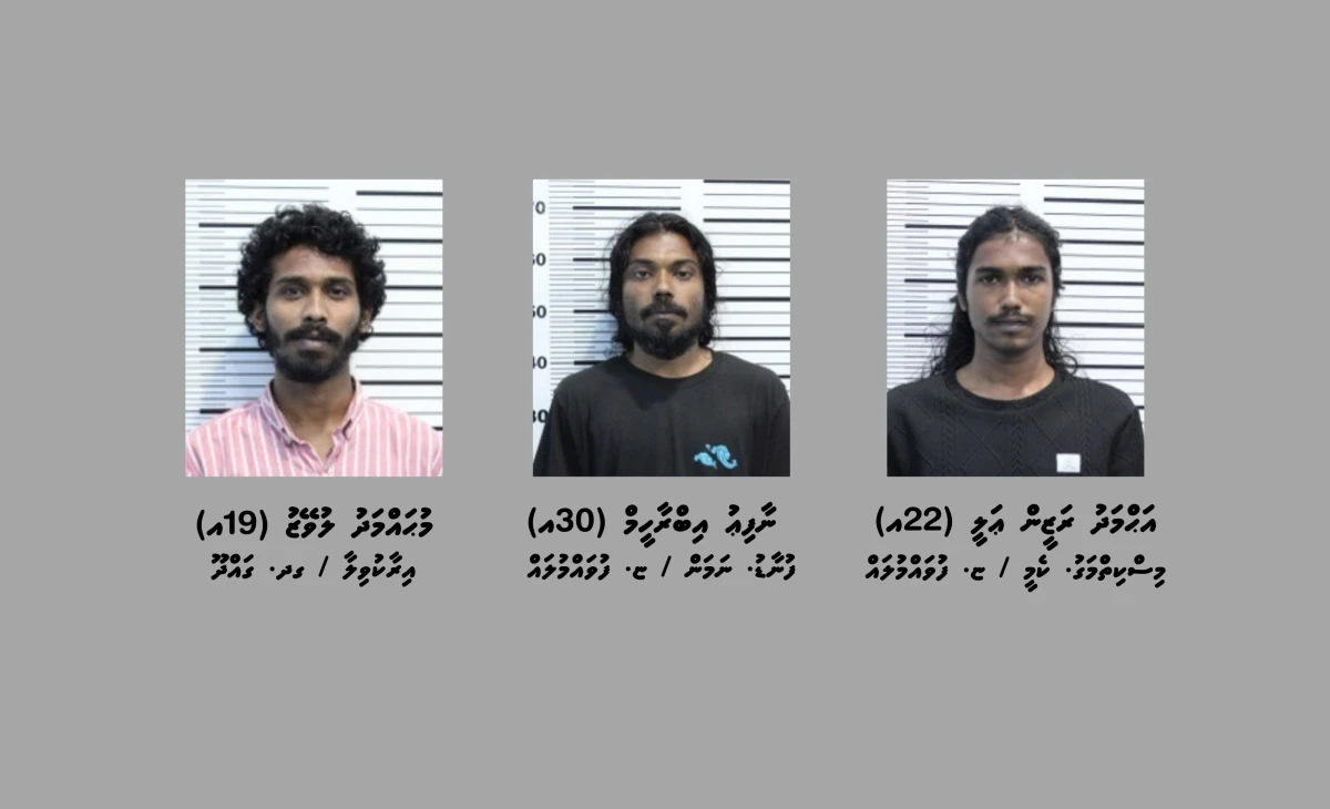 ބަލާ ފާސްކުރަން އުޅުމުން އިންޒާރުދީ މާރާމާރީ ހިންގުމުގެ ތުހުމަތު އޮތް ތިން މީހުން -- ފޮޓޯ: ޕޮލިސް