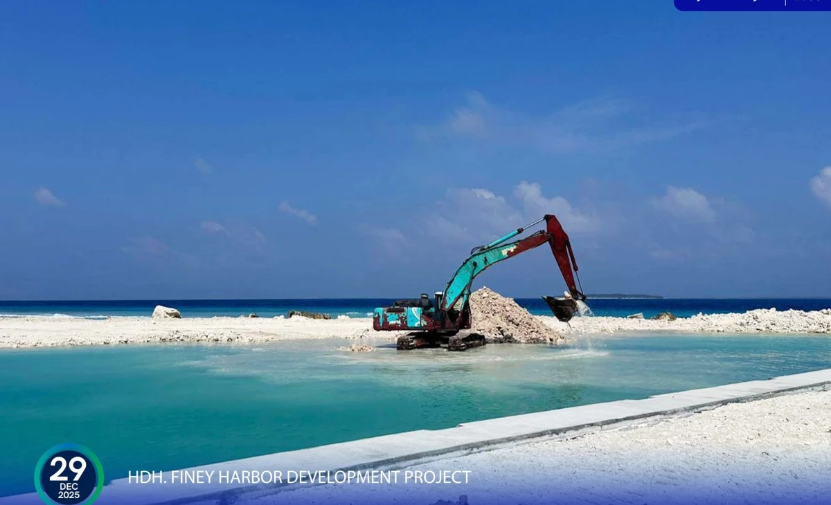 ފިނޭ ބަނދަރު ތަރައްގީކުރުމުގެ މަސައްކަތްތައް ކުރިއަށްދަނީ. ފޮޓޯ: އެމްޓީސީސީ