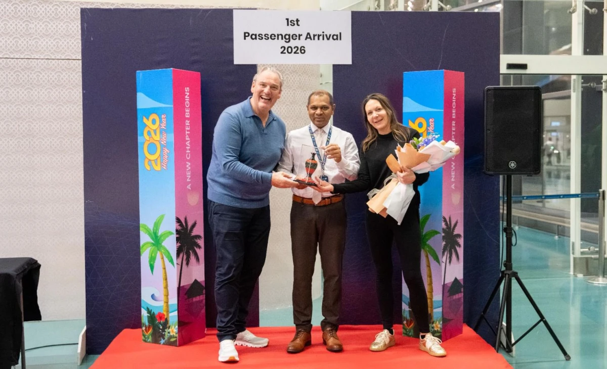 މީލާދީ އާ އަހަރުގެ އެންމެ ފުރަތަމަ ފަތުރުވެރިޔާއަށް މޯލްޑިވްސް އެއަރޕޯޓްސް ކޮމްޕެނީ ލިމިޓެޑް(އެމްއޭސީއެލް) އިން ހޫނު މަރުޙަބާއެއް ކިޔަފި އެވެ.