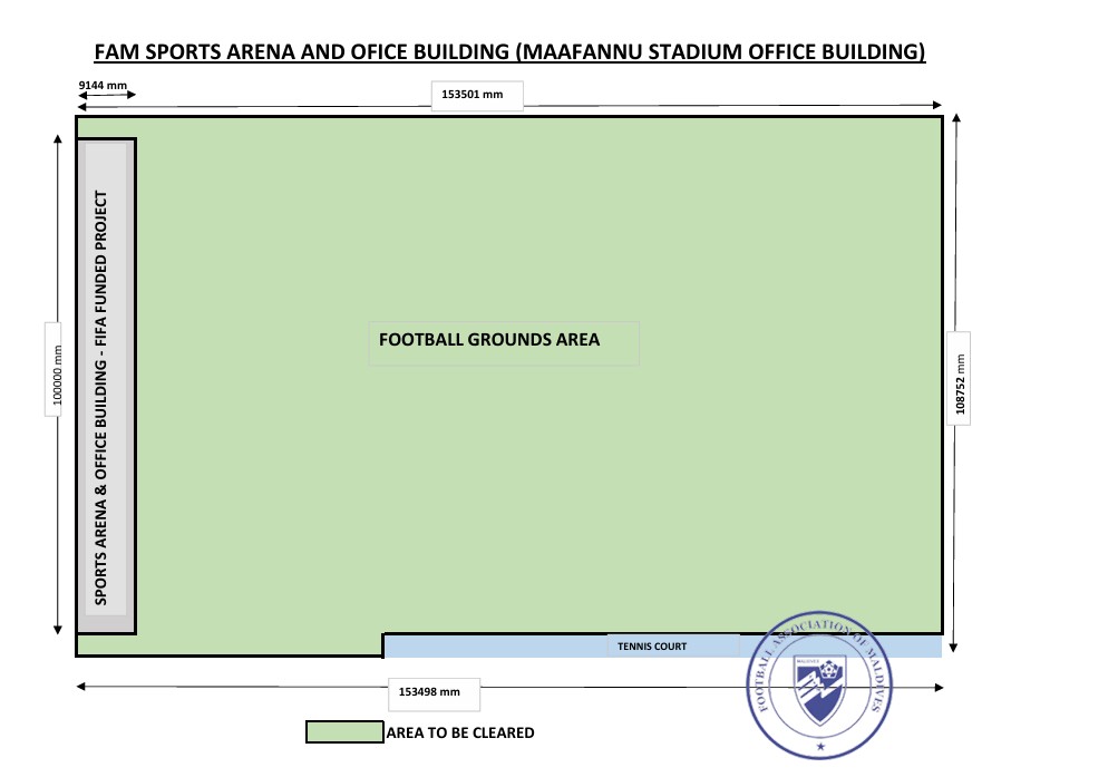 އެފްއޭއެމުން އިއްޔެ ގެޒެޓުގައި ކުރި އާންމު އެންގުމުގައި ބުނީ، މާފަންނު ސްޓޭޑިއަމް ސަރަހައްދަކީ ފީފާ އިން ހަރަދުކޮށްގެން ސްޕޯޓްސް އެރީނާ އާއި އޮފީސް އިމާރާތެއް އެޅުމަށް އެފްއޭއެމަށް ދޫކޮށްފައިވާ ބިމެއް ކަމަށެވެ.