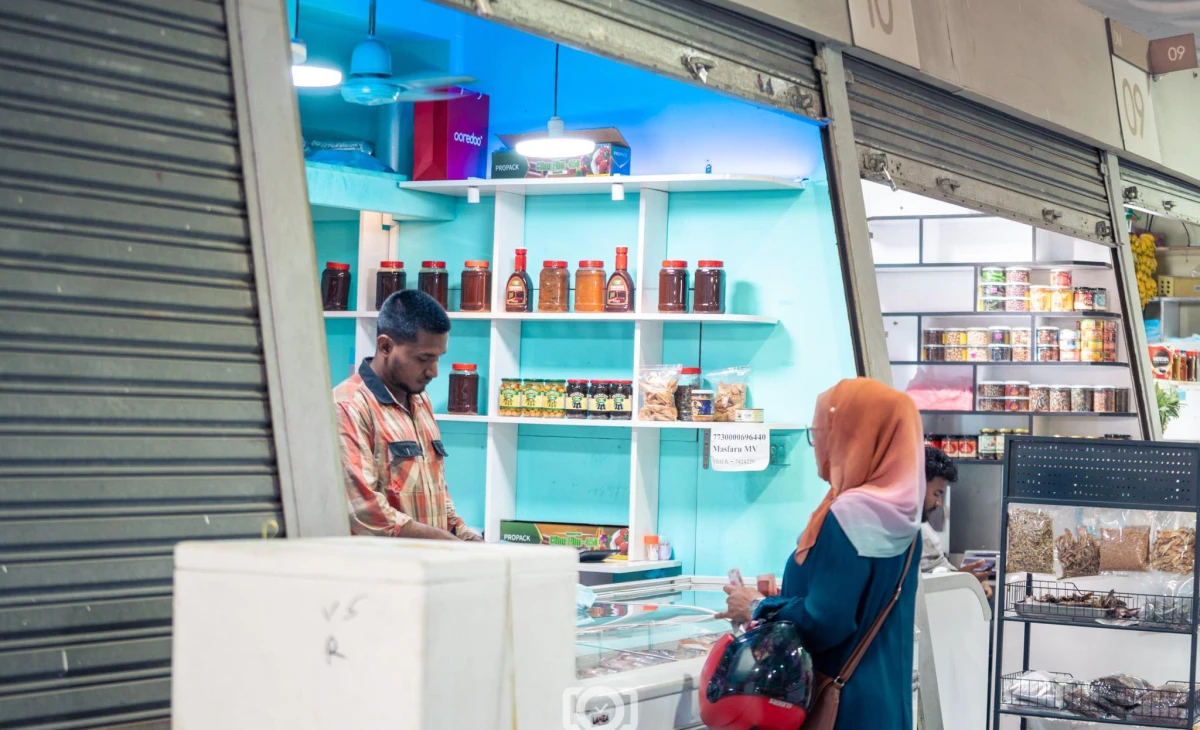 ހުޅުމާލެ ފުރަތަމަ ފިޔަވަހީގައި ހުންނަ މާރުކޭޓުން މީހަކު ވިޔަފާރިކުރަނީ. ފޮޓޯ: ވަގުތު