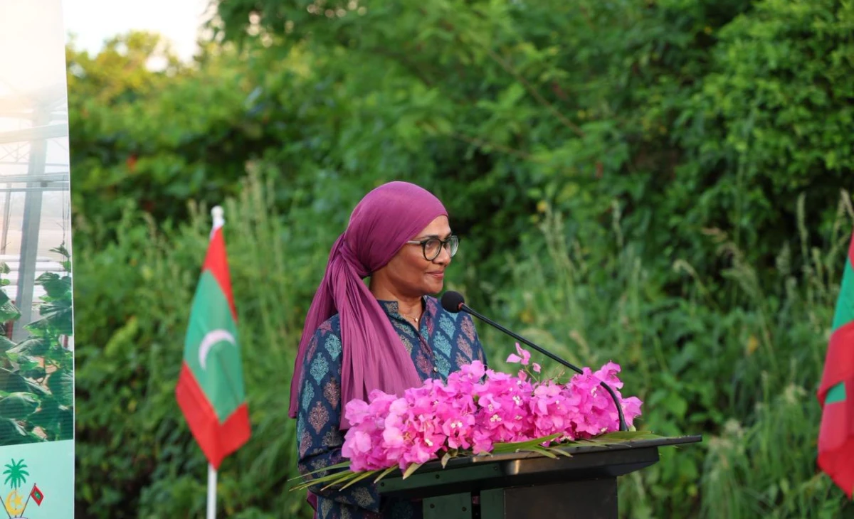 ވާދޫ ގްރީން ފާމް ހުޅުވުމަށް ބޭއްވި ރަސްމިއްޔާތުގައި ޑރ. މާރިޔާ ވާހަކަ ދައްކަވަނީ. --ފޮޓޯ: ދަނޑުވެރިކަމާ ބެހޭ މިނިސްޓްރީ