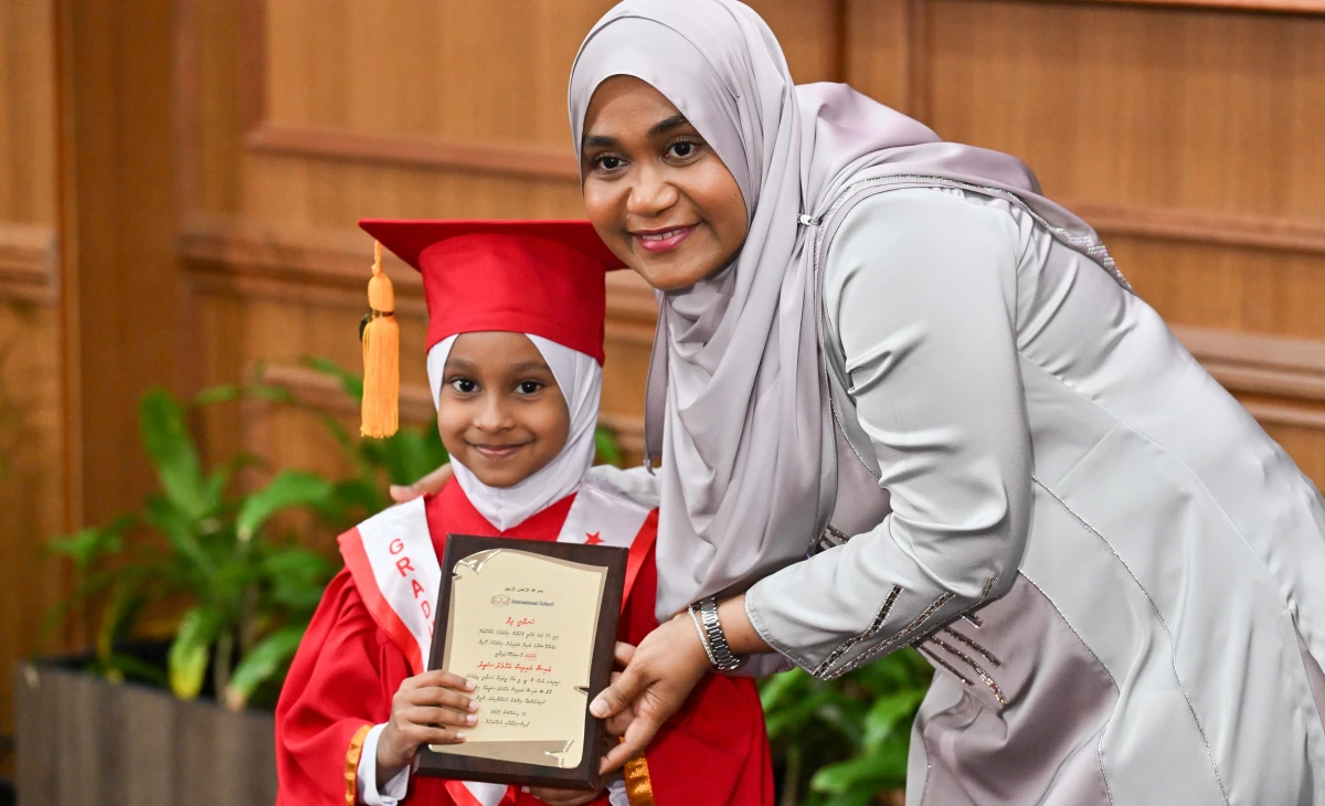 2025، ޑިސެންބަރު 21، ރައީސުލްޖްމްހޫރިއްޔާގެ އަނބިކަނބަލުން، އެކްސެލް އިންޓަރނޭޝަނަލް ސްކޫލުގެ ދަސްވެނިވުން 2025 ގައި ބައިވެރިވަޑައިގަތުން. ފޮޓޯ: ރައީސް އޮފީސް