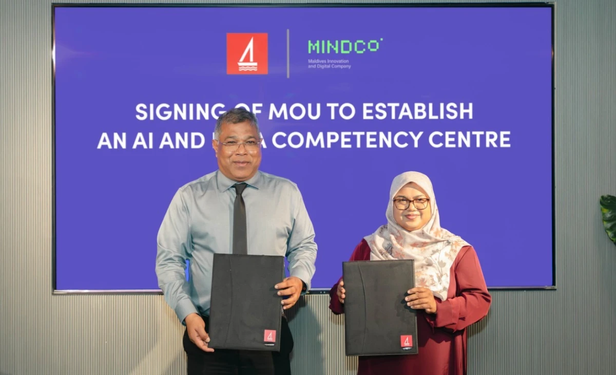 މޯލްޑިވްސް އިނޮވޭޝަން އެންޑް ޑިޖިޓަލް ކޮމްޕެނީ (މައިންޑްކޯ) އާއި ބޭންކް އޮފް މޯލްޑިވްސް އާ ދެމެދު، އޭއައި އަދި ޑޭޓާ ކޮމްޕިޓެންސީ ސެންޓަރެއް ގާއިމުކުރުމަށް އެމްއޯޔޫއެއްގައި މިއަދު ސޮއިކޮށްފި އެވެ.