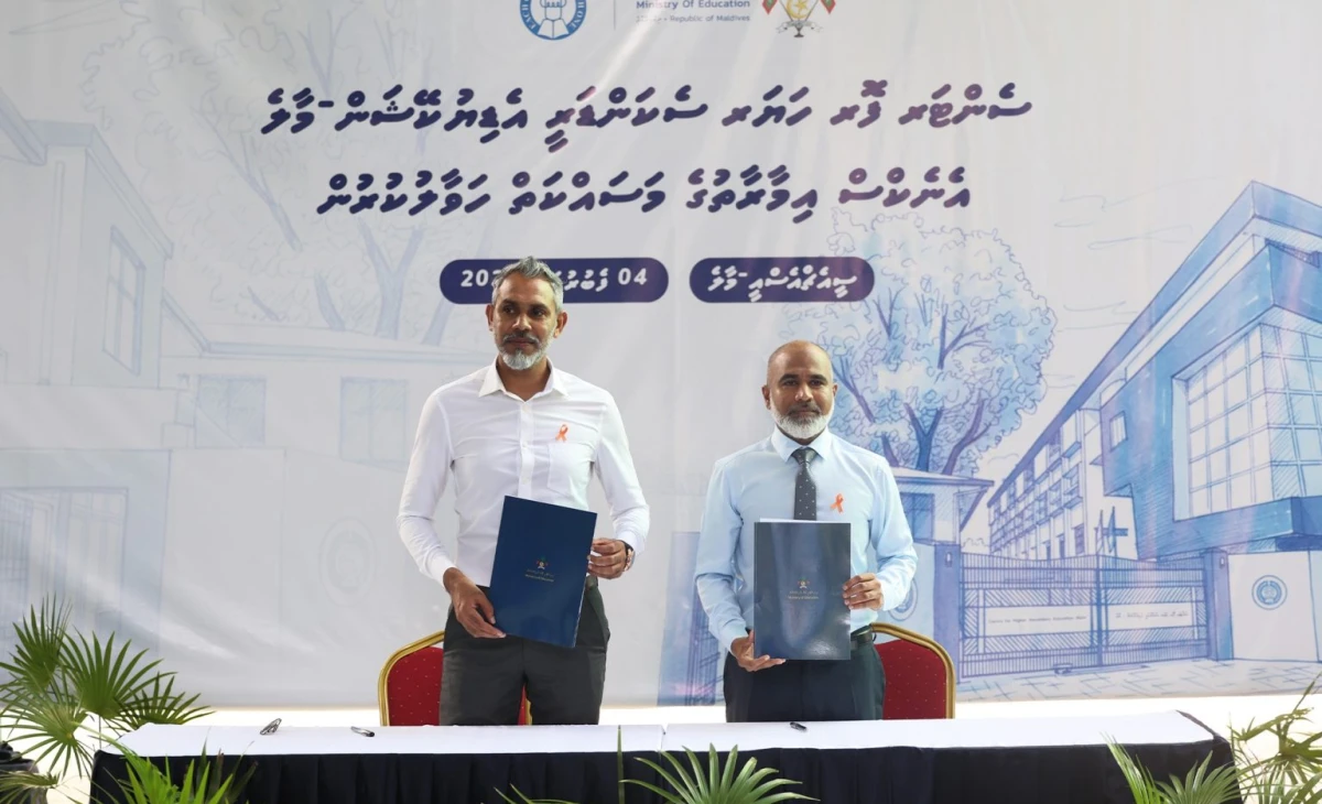 މިއަދު ބޭއްވި ރަސްމިއްޔާތުގައި މި އިމާރާތް އެޅުމުގެ އެއްބަސްވުމުގައި އެޑިޔުކޭޝަން މިނިސްޓްރީގެ ފަރާތުން ސޮއިކުރެއްވީ ވަޒީރު ޑރ. އިސްމާޢީލް ޝަފީޢުއެވެ. އަދި ޔެސް މޯލްޑިވްސްގެ ފަރާތުން ސޮއިކުރެއްވީ އެކުންފުނީގެ ޑިރެކްޓަރު، އަހުލާމް ރުޝްދީއެވެ.