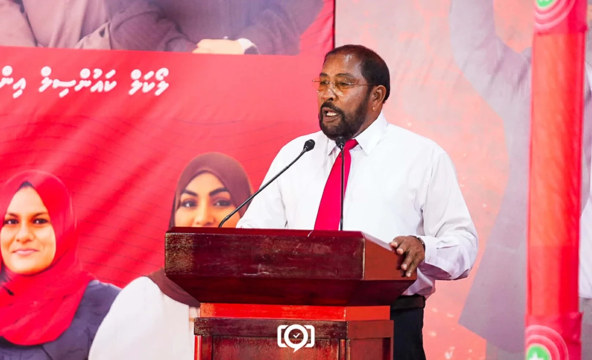 ރޭގެ ޖަލްސާގައި ޖުމްހޫރީ ޕާޓީގެ ލީޑަރު ގާސިމް ވާަހަކަދައްކަވަނީ، ފޮޓޯ: ވަގުތު
