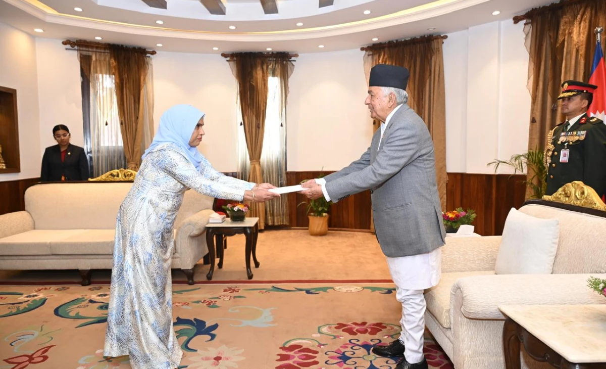 ދިވެހިރާއްޖެ އިން ނޭޕާލަށް ކަނޑައެޅުއްވި ނޮން-ރެޒިޑަންޓް ސަފީރު ޢާއިޝަތު އަޒީމާ، އެ ކަމަނާގެ ސަފީރުކަމުގެ ފަތްކޮޅު، ނޭޕާލް ގެ ރައީސް ރާމްޗަންދުރަ ޕައުޑެލް އަށް މިއަދު އަރުވައިފި އެވެ.
