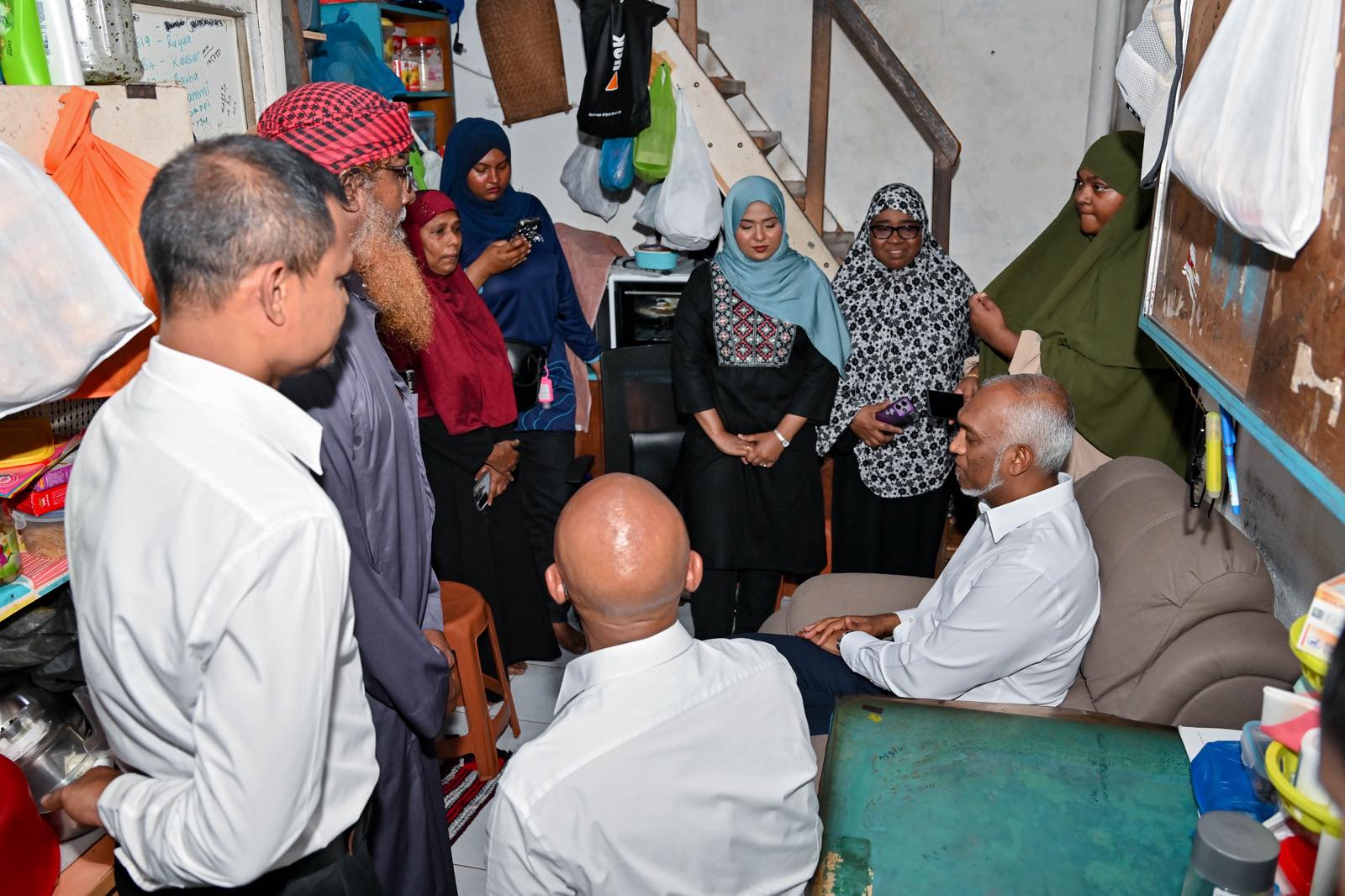 މެދު ހެންވޭރު ދާއިރާގެ ދޮރުން ދޮރަށް ހަރަކާތުގެ ތެރެއިން ރައީސުލްޖުމްހޫރިއްޔާ އާއިލާއަކާ ބަައްދަލުކުރައްވަނީ. ފޮޓޯ: ޕީއެންސީ