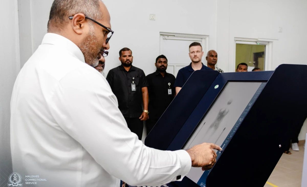 ވަޒީރު އިހުސާން ބޮޑީ ސްކޭނިން މެޝިންގެ ހިދުމަތް ފައްޓަވާދެއްވަނީ. ފޮޓޯ؛މޯލްޑިވްސް ކަރެކްޝަނަލް ސާވިސް