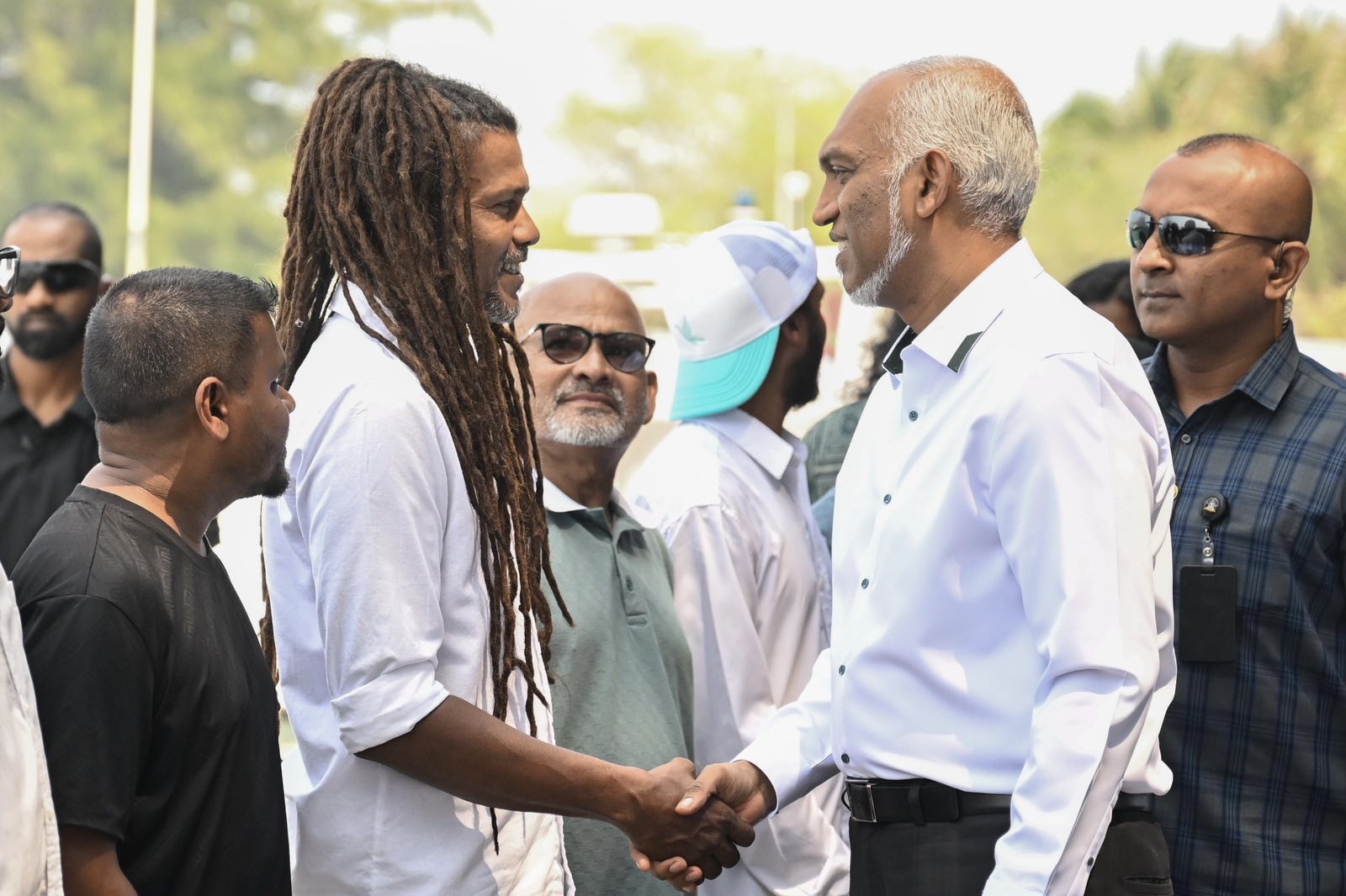 ރައީސުލްޖުމްހޫރިއްޔާ ޑރ. މުޙައްމަދު މުޢިއްޒު ވިލިމާލެއަށް ވަޑައިގެންނެވުމުން އެމަނިކުފާނަށް ވިލިމާލޭގެ ރައްޔިތުން މަރުޙަބާ ކިޔުން. ފޮޓޯ: ޕީއެންސީ