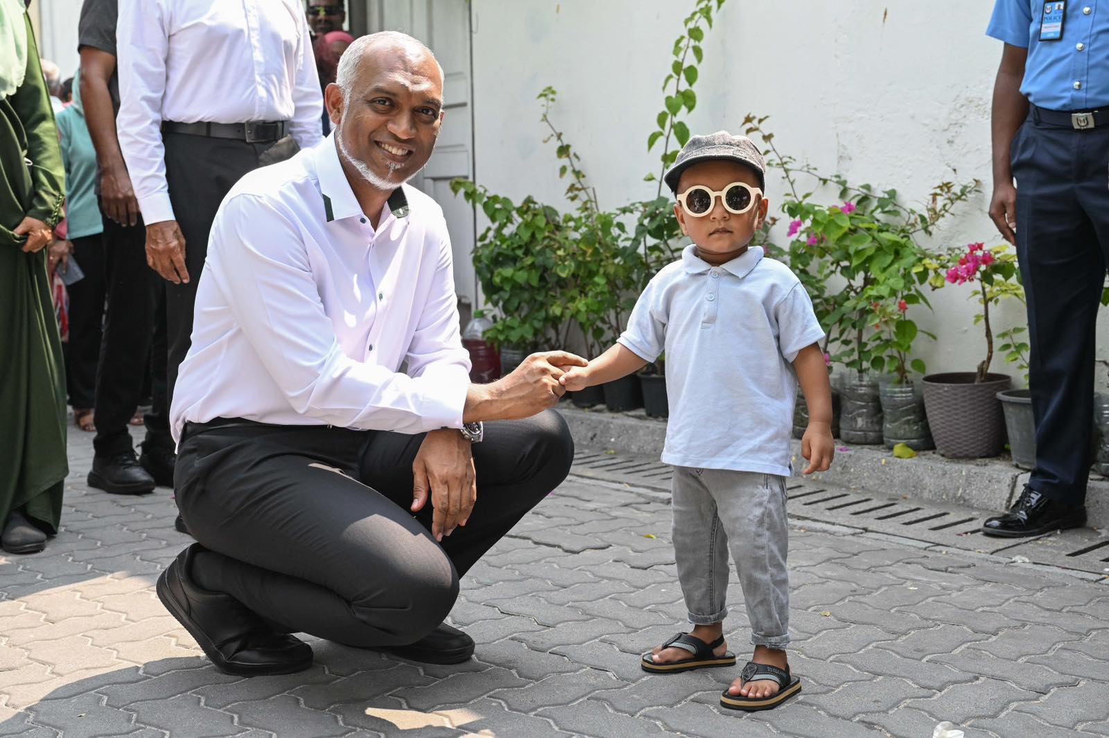 ވިލިމާލެ ދޮރުން ދޮރަށް ހަރަކާތުގައި ރައީސުލްޖުމްހޫރިއްޔާ ތުއްތު ކުއްޖަކާއެކު ފޮޓޯއަކަށް ހުއްޓިވަޑައިގެން. އެމަނިކުފާނު ގެންދަވަނީ ކެންޑިޑޭޓުންނާއެކު ހުރިހާ ދާއިރާއެއްގެ ދޮރުން ދޮރަށް ހަރަކާތުގައި ބައިވެރިވަޑައިގަންނަވަމުން.