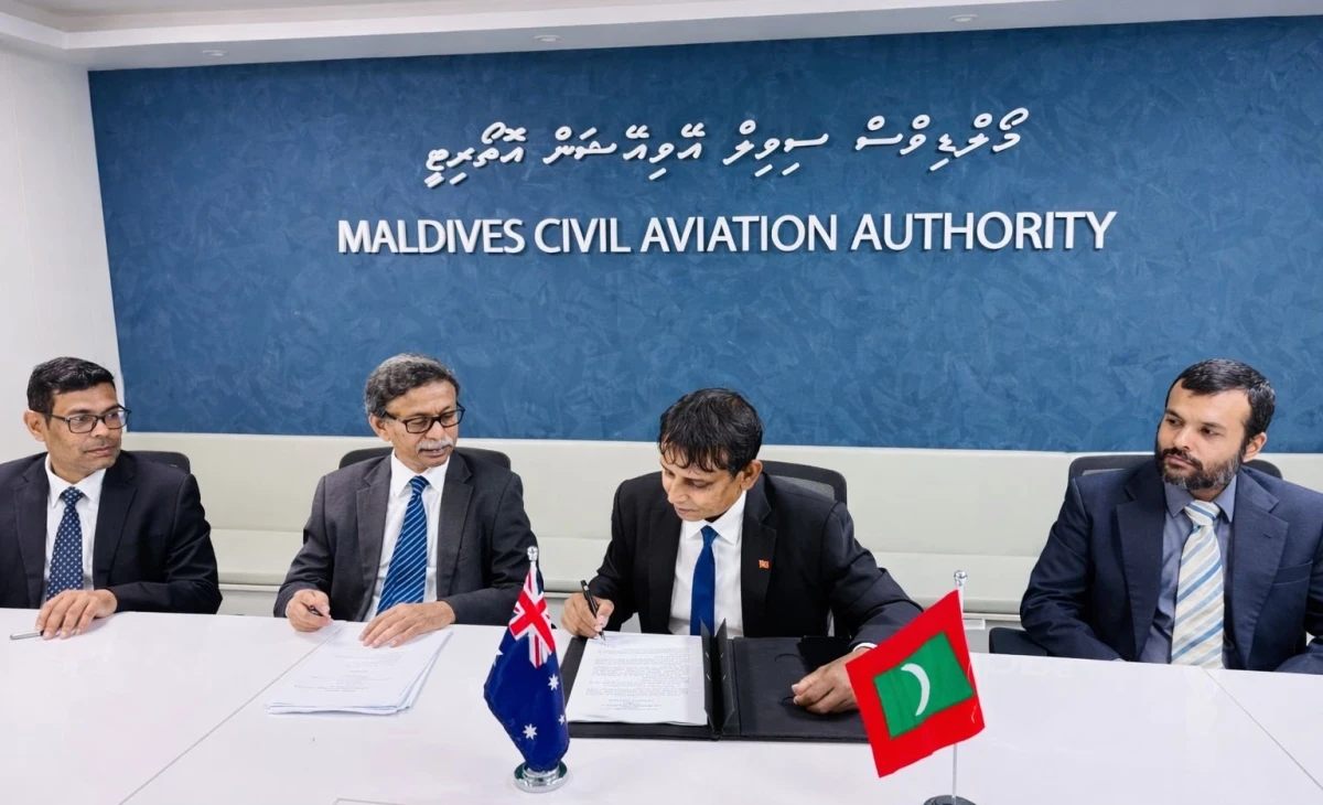 ރާއްޖެެއާއި އޮސްޓްރޭލިއާ ދެމެދު ވައިގެން ދަތުރުފަތުރާ ބެހޭ އެއްބަސްވުމެއްގައި ސޮއިކުރުން . ފޮޓޯ؛ ސޯޝަލް މީޑިއާ