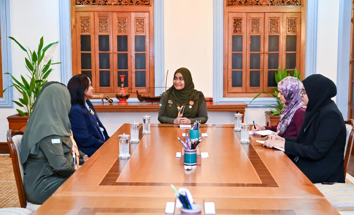 ދިވެހިރާއްޖޭގެ ގާލް ގައިޑް އެސޯސިއޭޝަންގެ ބައެއް މެންބަރުންނާ، ރައީސުލްޖުމްހޫރިއްޔާގެ އަނބިކަނބަލުން އަދި ޗީފް ގައިޑް، ސާޖިދާ މުޙައްމަދު ބައްދަލުކުރެއްވުން. ފޮޓޯ؛ ރައީސް އޮފީސް