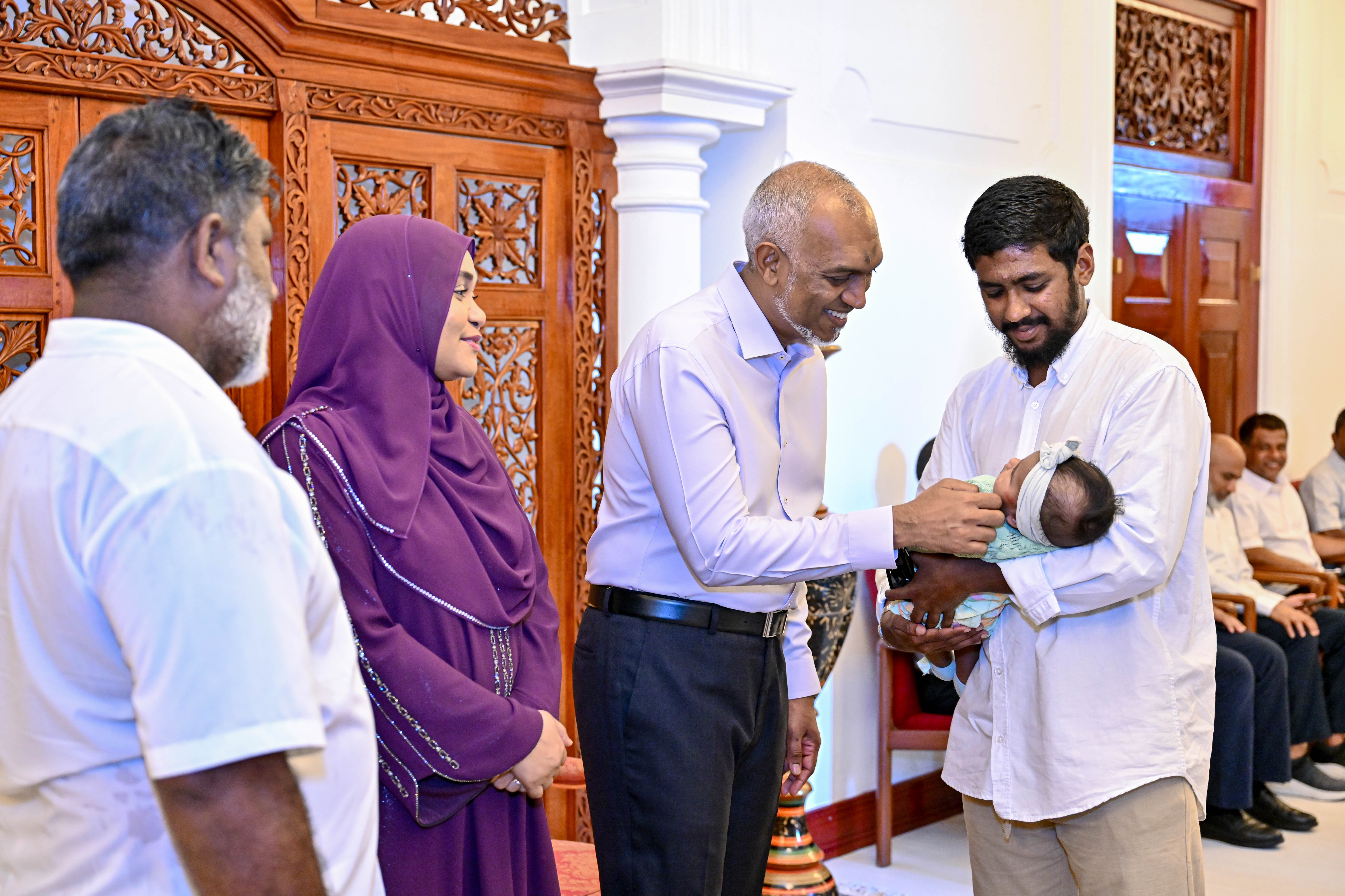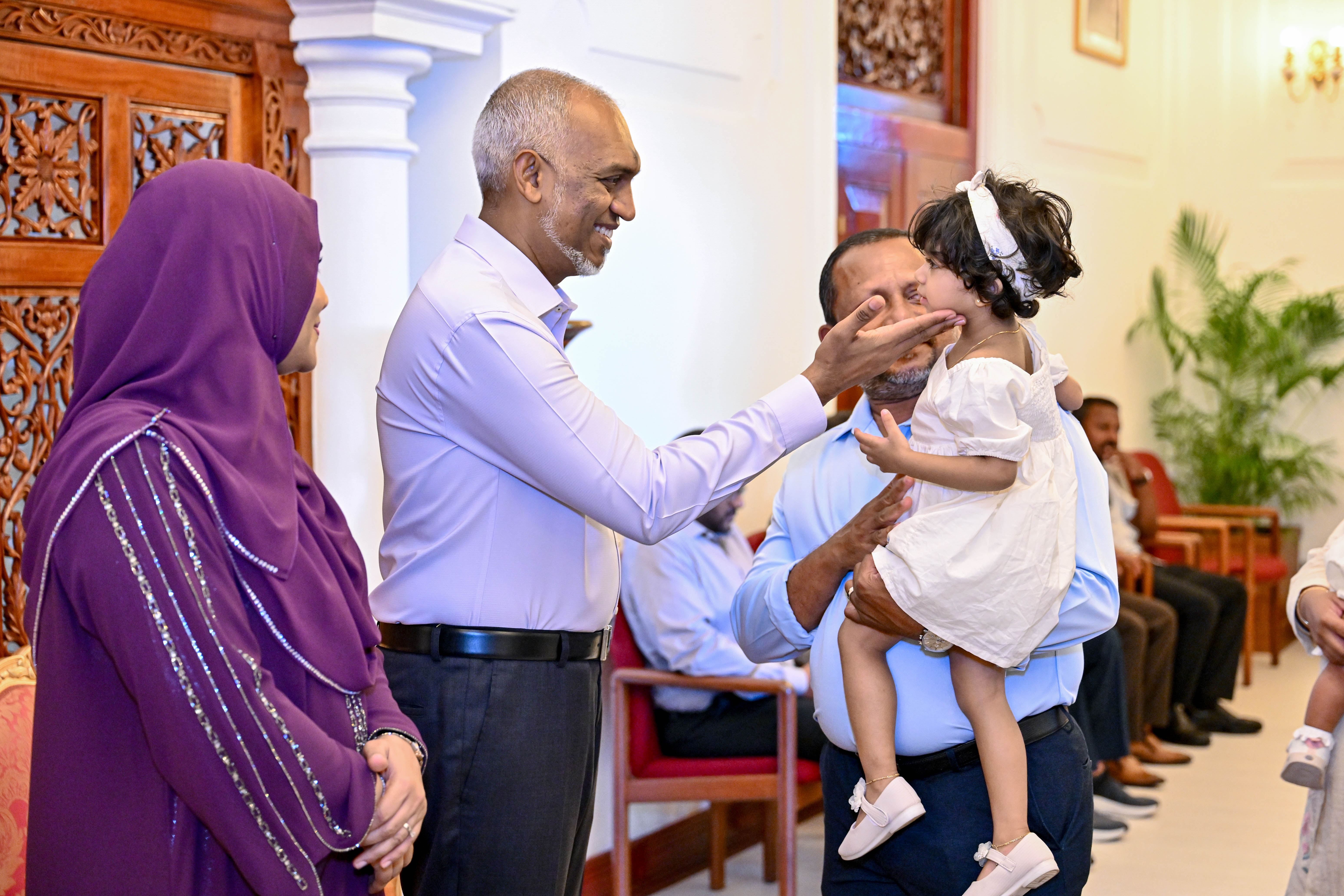 ރައީސުލްޖުމްހޫރިއްޔާގެ ދެކަނބަލުން ޢީދު ސަލާން ކުރެއްވުމުގެ ތެރެއިން. ފޮޓޯ: ރައީސް އޮފީސް