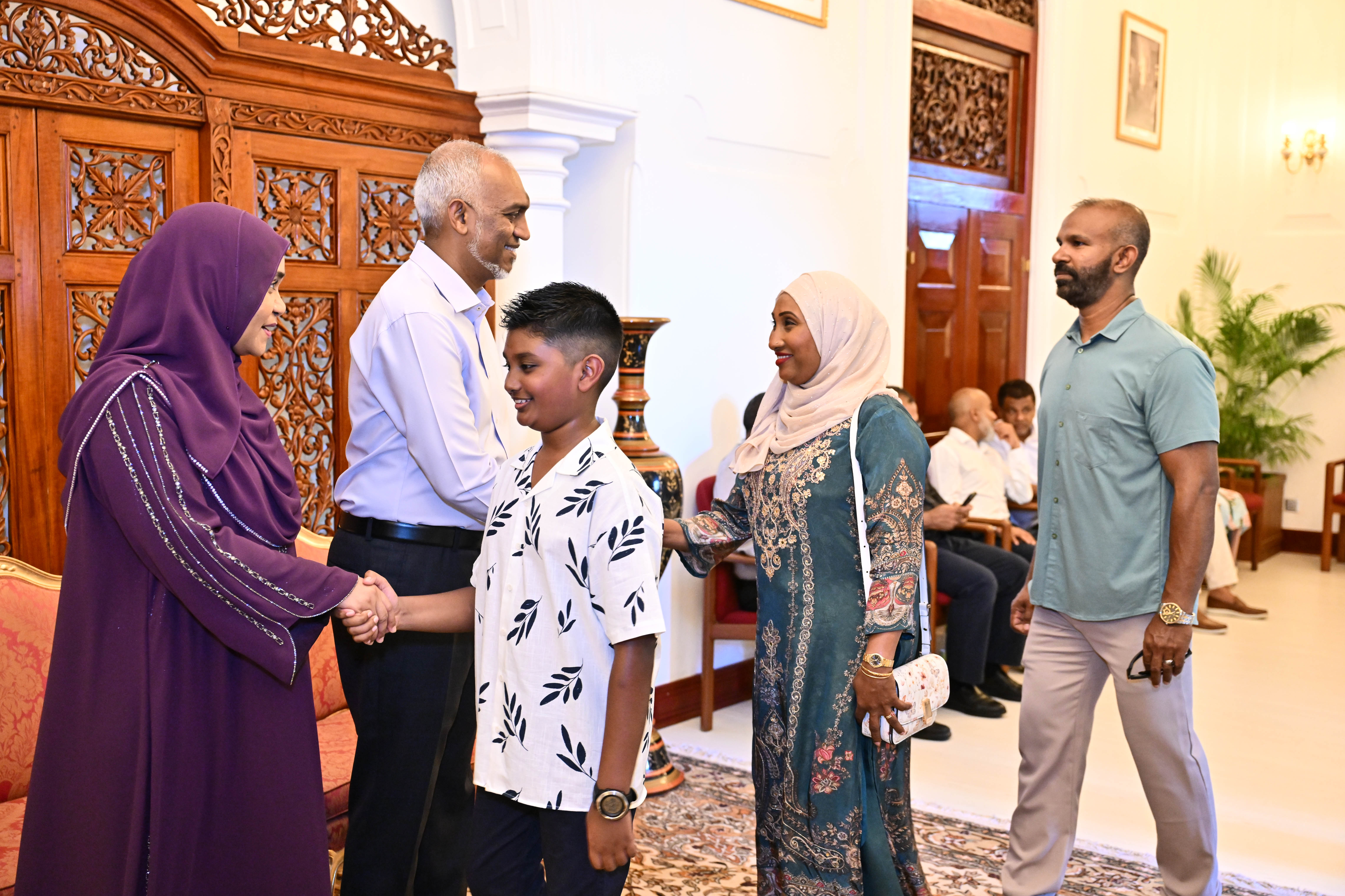 ރައީސުލްޖުމްހޫރިއްޔާގެ ދެކަނބަލުން ޢީދު ސަލާން ކުރެއްވުން. ފޮޓޯ: ރައީސް އޮފީސް