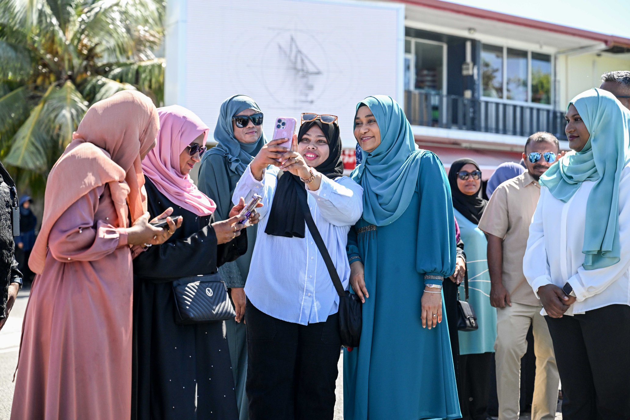 ފަސްޓް ލޭޑީ ތިނަދޫ ސިޓީއަށް ވަޑައިގެންނެވުމުން މަރުޙަބާ ކިޔަނީ. ފޮޓޯ: ޕީއެންސީ